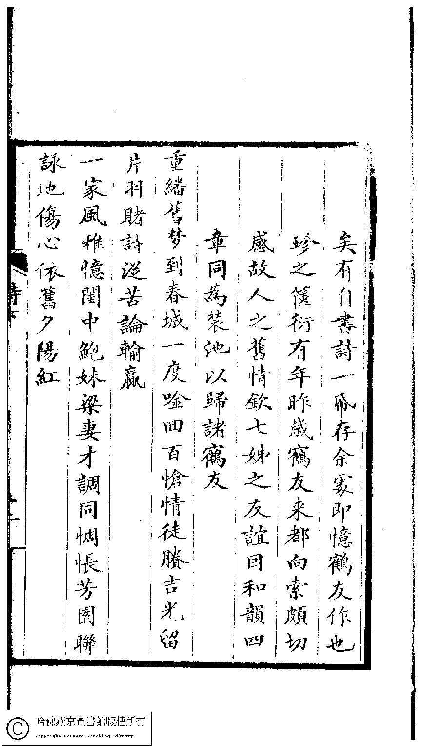 詩詞 [墨君女史鹤友七姊小姑也墨君今歿十年矣有自書詩一紙存余處即憶鹤友作也珍之篋衍有年昨歲鹤友來都向索頗切感故人之舊情欽七姊之友誼因和韻四章同為裝池以歸諸鹤友(四首)]