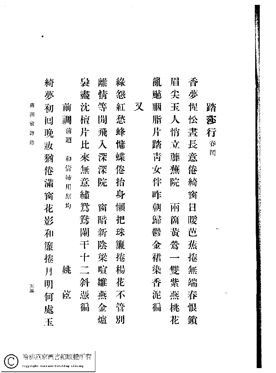 | 原書: 南湘室詩草﹕一卷﹐詩餘﹕一卷(姚倩、姚茞撰) |