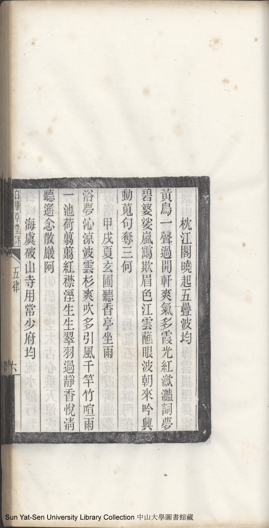 | (PRINT FRIENDLY VERSION) 白華草堂詩:六卷,玉尺樓詩:一卷(清張昭漢撰)。民國二十三年(1934)刊本 ![]() 頁碼 : 五律6a | 点 击 放 大 | 返回 |