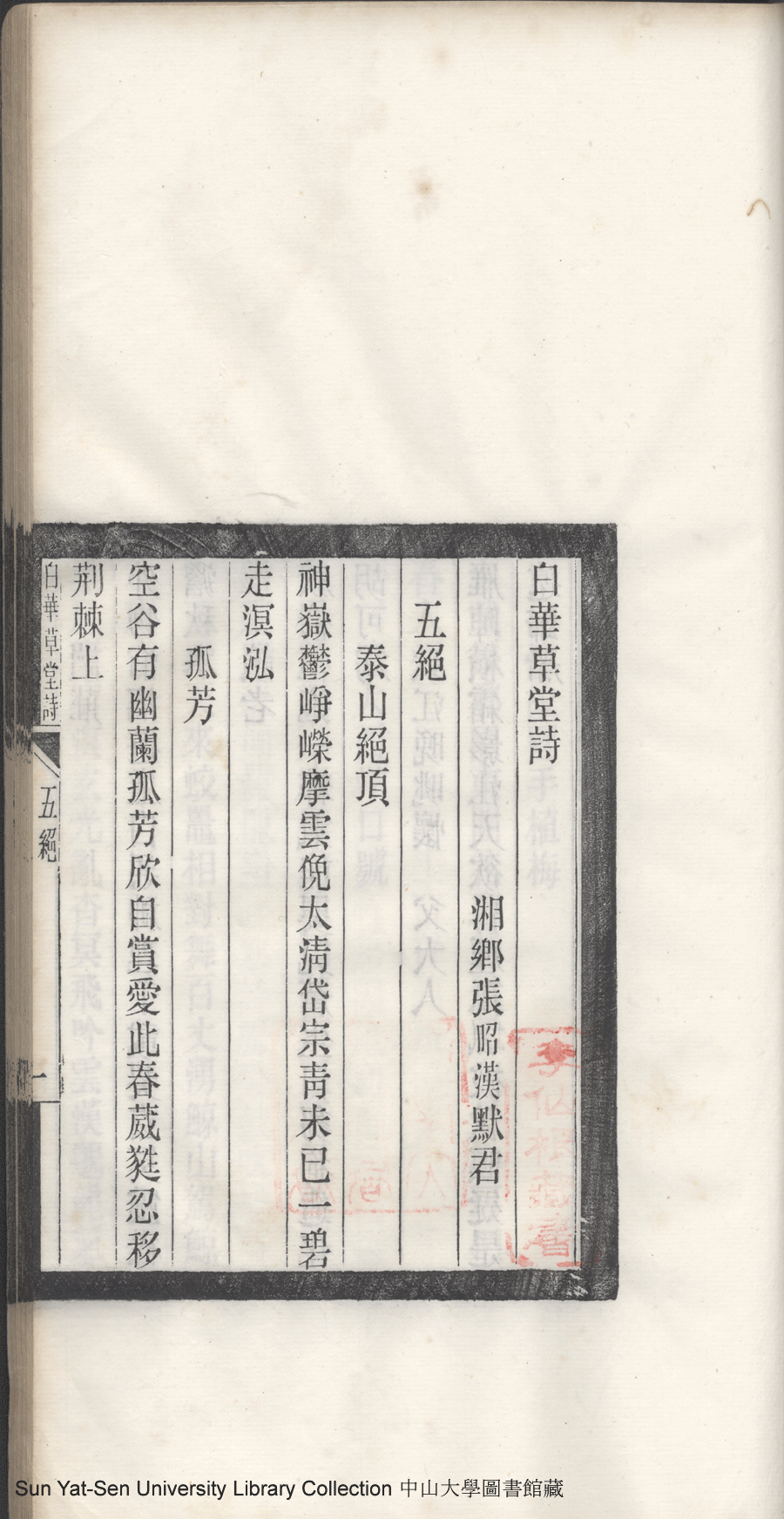 | (PRINT FRIENDLY VERSION) 白華草堂詩:六卷,玉尺樓詩:一卷(清張昭漢撰)。民國二十三年(1934)刊本 ![]() 頁碼 : 五絕1a | 点 击 放 大 | 返回 |