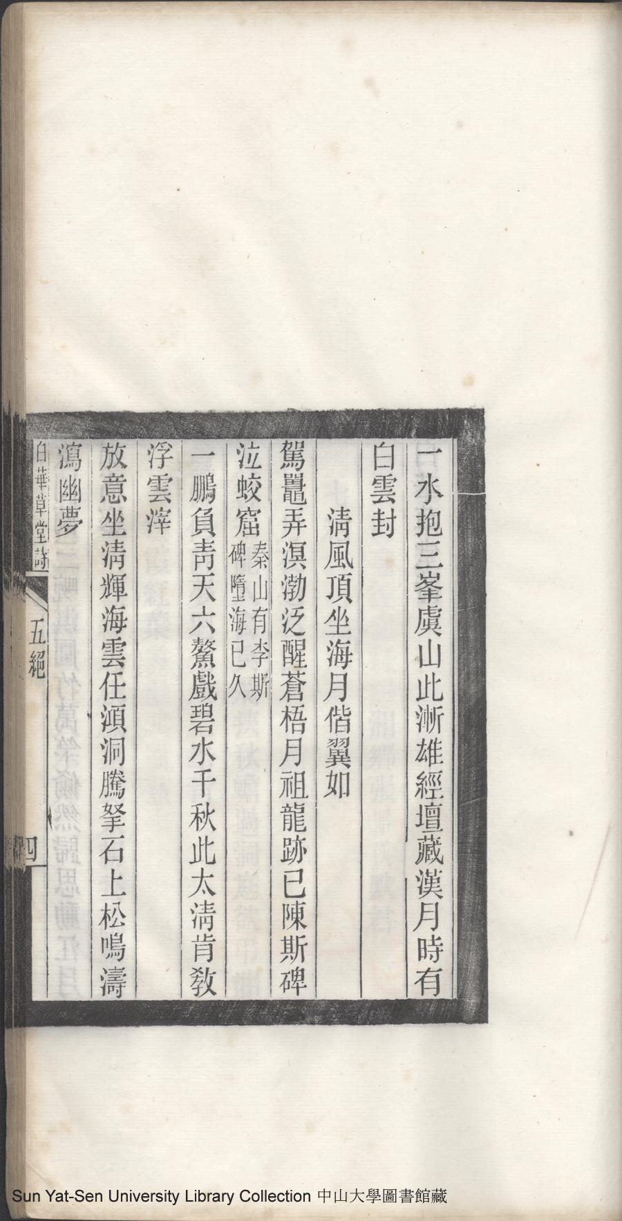 | (PRINT FRIENDLY VERSION) 白華草堂詩:六卷,玉尺樓詩:一卷(清張昭漢撰)。民國二十三年(1934)刊本 ![]() 頁碼 : 五絕4a | 点 击 放 大 | 白華草堂詩:六卷,玉尺樓詩:一卷(清張昭漢撰)。民國二十三年(1934)刊本![]() 頁碼 : 五絕3b | 点 击 放 大 | 返回 |
