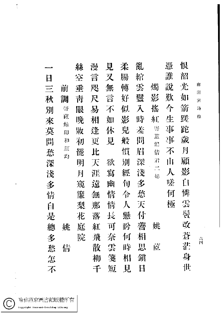 | 原書: 南湘室詩草﹕一卷﹐詩餘﹕一卷(姚倩、姚茞撰) |