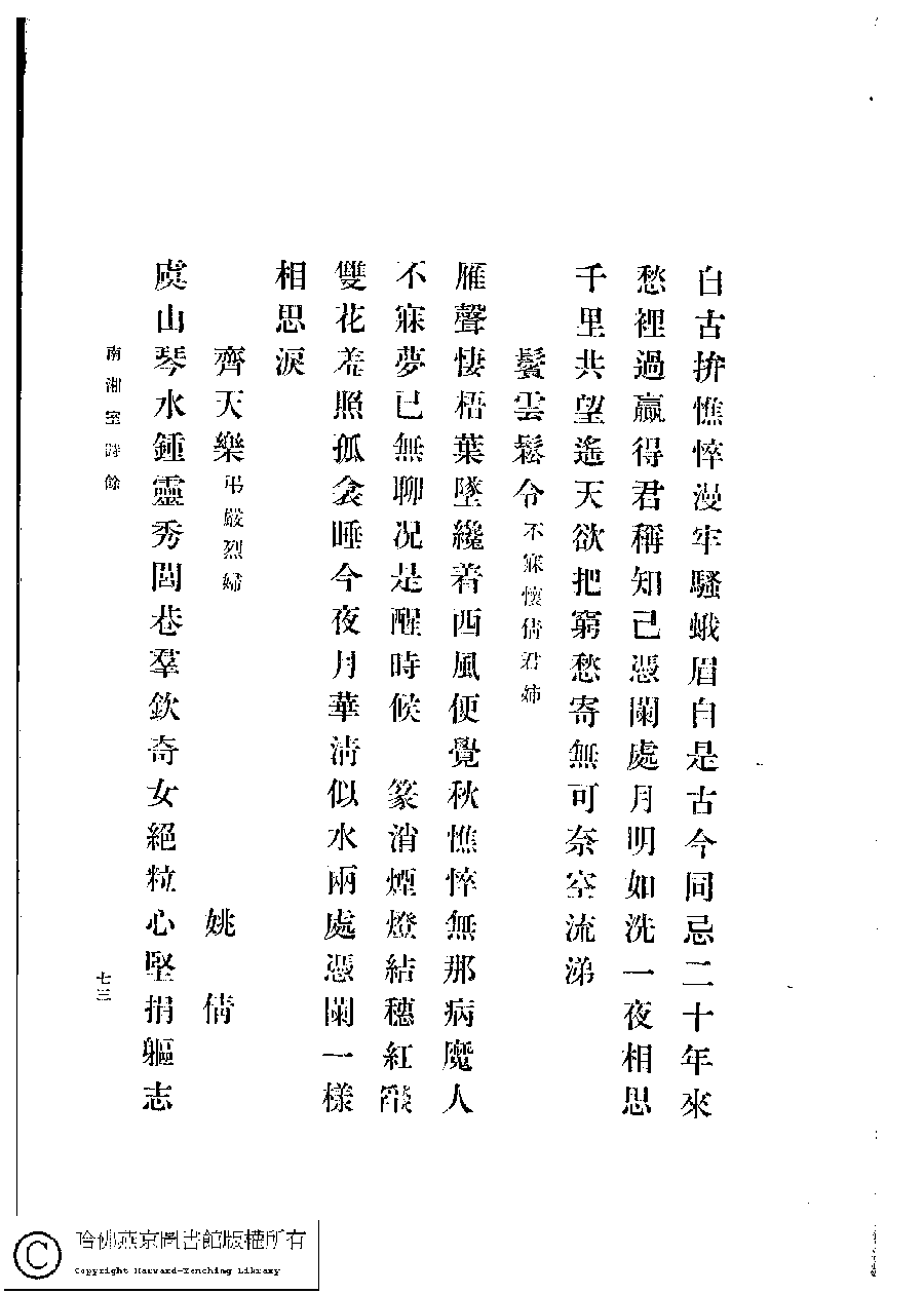 | 原書: 南湘室詩草﹕一卷﹐詩餘﹕一卷(姚倩、姚茞撰) |
