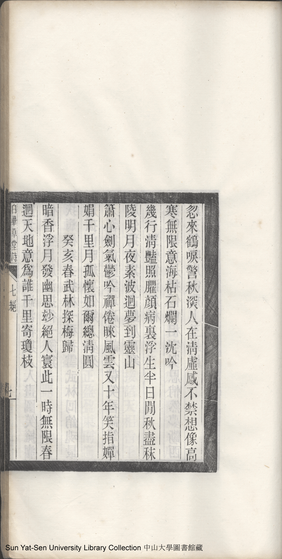 | (PRINT FRIENDLY VERSION) 白華草堂詩:六卷,玉尺樓詩:一卷(清張昭漢撰)。民國二十三年(1934)刊本 ![]() 頁碼 : 七絕7b | 点 击 放 大 | 白華草堂詩:六卷,玉尺樓詩:一卷(清張昭漢撰)。民國二十三年(1934)刊本![]() 頁碼 : 七絕7a | 点 击 放 大 | 返回 |