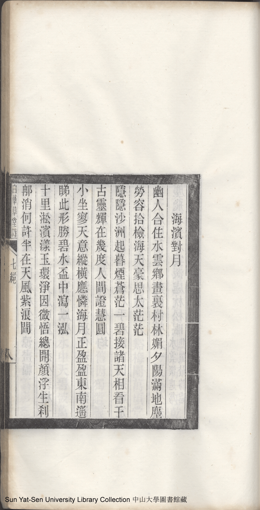 | (PRINT FRIENDLY VERSION) 白華草堂詩:六卷,玉尺樓詩:一卷(清張昭漢撰)。民國二十三年(1934)刊本 ![]() 頁碼 : 七絕8a | 点 击 放 大 | 返回 |