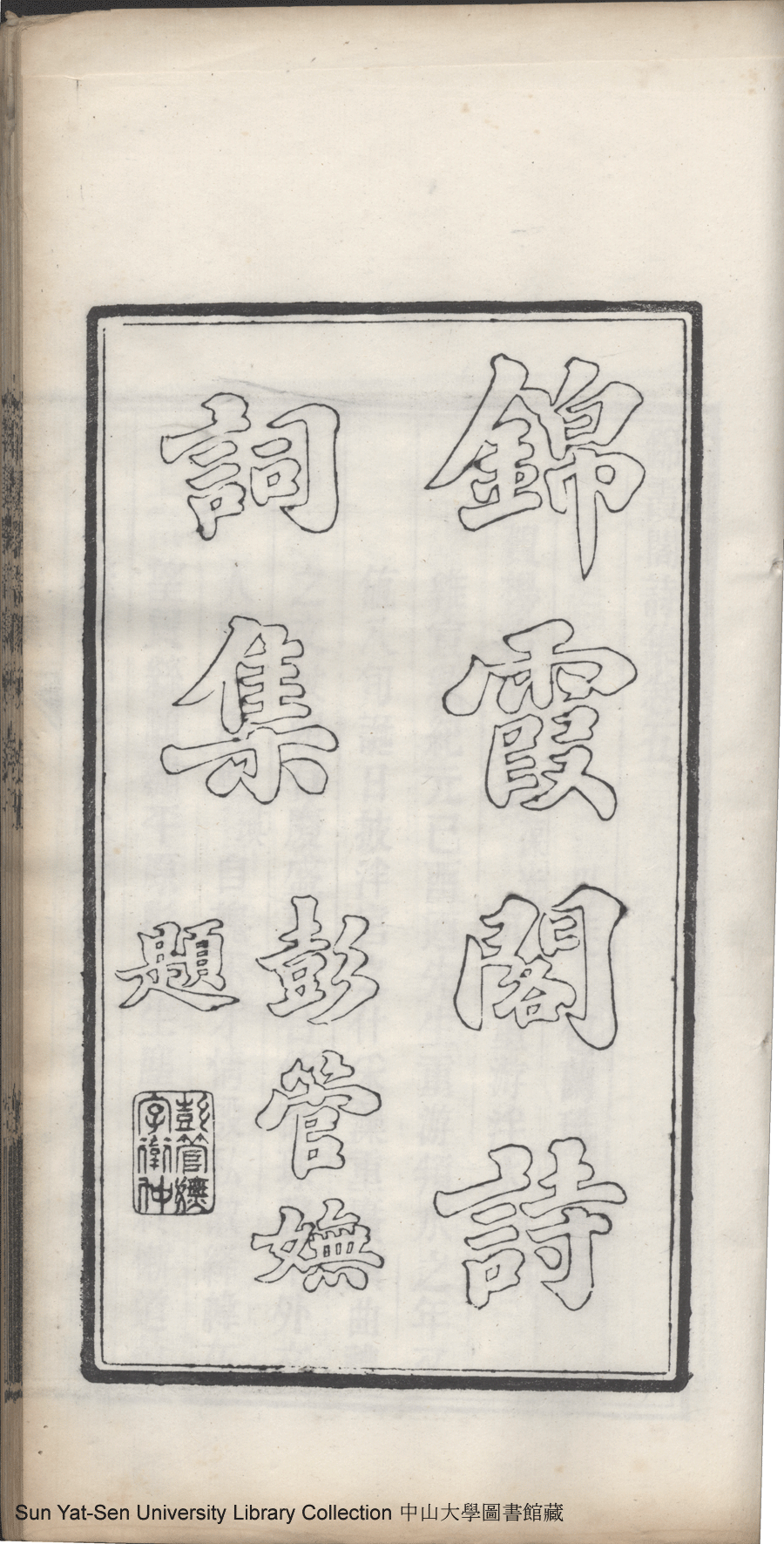 | 原書: 錦霞閣詩集:五卷,詞集:一卷(清包蘭瑛撰) |