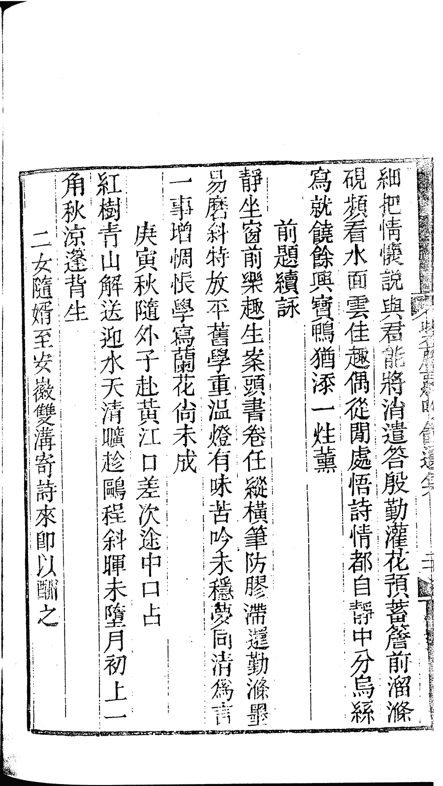 | (PRINT FRIENDLY VERSION) 紫藤蘿吟館遺集﹕一卷(清章婉儀撰)。清光緒二十一年(1895)刻本 ![]() 頁碼 : 詩.22a | 点 击 放 大 | 紫藤蘿吟館遺集﹕一卷(清章婉儀撰)。清光緒二十一年(1895)刻本![]() 頁碼 : 詩.21b | 点 击 放 大 | 返回 |