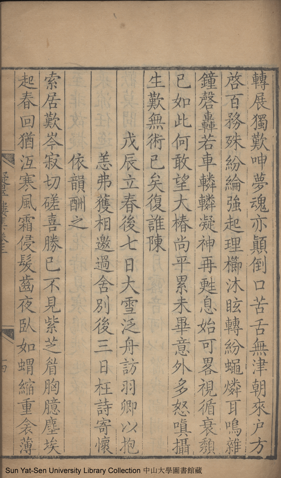 詩詞 [戊辰立春後七日大雪泛舟訪羽卿以抱恙弗獲相邀過舍別後三日枉詩寄懷依韻酬之]
