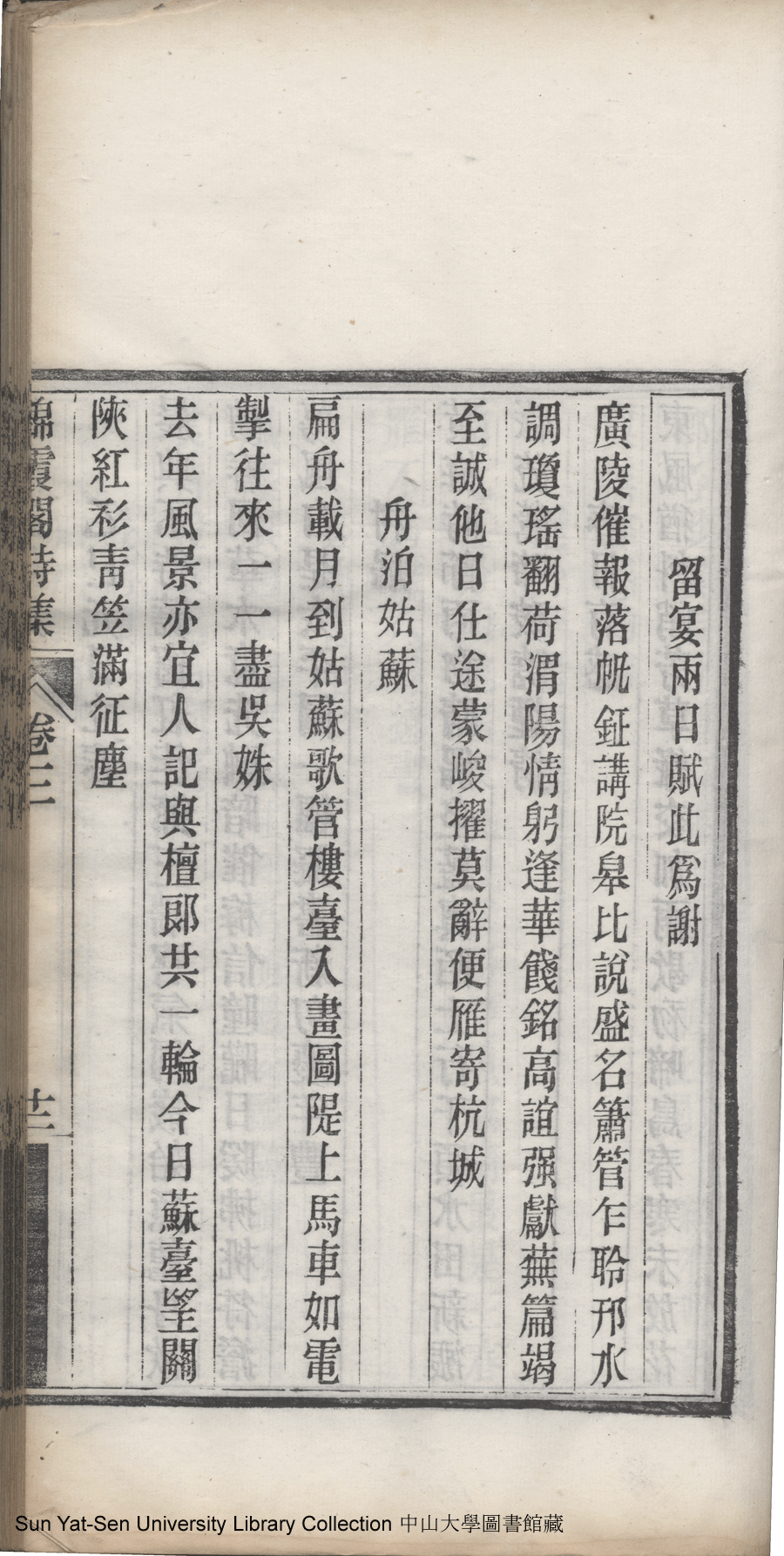 | (PRINT FRIENDLY VERSION) 錦霞閣詩集:五卷,詞集:一卷(清包蘭瑛撰)。宣統二年庚戌(1910)刊本 ![]() 頁碼 : 卷三12a | 点 击 放 大 | 錦霞閣詩集:五卷,詞集:一卷(清包蘭瑛撰)。宣統二年庚戌(1910)刊本![]() 頁碼 : 卷三11b | 点 击 放 大 | 返回 |