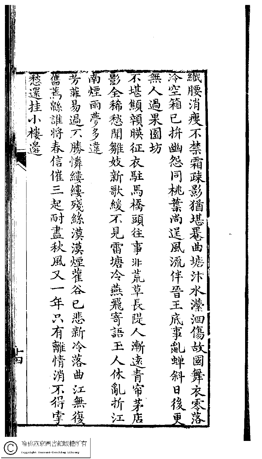 | (PRINT FRIENDLY VERSION) 泰州仲氏閨秀集合刻﹕七種(清仲蓮慶等撰) : 綺泉女史遺草﹕一卷。清嘉慶十二年(1807)刻本。 ![]() 頁碼 : 14a | 点 击 放 大 | 泰州仲氏閨秀集合刻﹕七種(清仲蓮慶等撰) : 綺泉女史遺草﹕一卷。清嘉慶十二年(1807)刻本。![]() 頁碼 : 13b | 点 击 放 大 | 返回 |