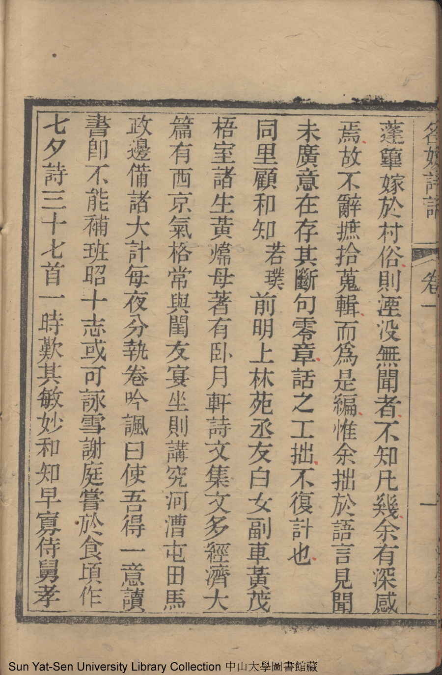 | (PRINT FRIENDLY VERSION) 名媛詩話十二卷續集三卷: 十五卷(清沈善寶撰)。清光緒五年(1879)鴻雪樓刻巾箱本 ![]() 頁碼 : 卷一2a | 点 击 放 大 | 名媛詩話十二卷續集三卷: 十五卷(清沈善寶撰)。清光緒五年(1879)鴻雪樓刻巾箱本![]() 頁碼 : 卷一1b | 点 击 放 大 | 返回 |