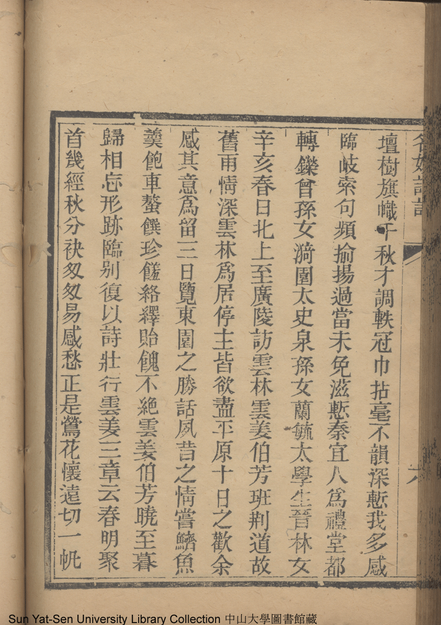 | (PRINT FRIENDLY VERSION) 名媛詩話十二卷續集三卷: 十五卷(清沈善寶撰)。清光緒五年(1879)鴻雪樓刻巾箱本 ![]() 頁碼 : 續集下6b | 点 击 放 大 | 名媛詩話十二卷續集三卷: 十五卷(清沈善寶撰)。清光緒五年(1879)鴻雪樓刻巾箱本![]() 頁碼 : 續集下6a | 点 击 放 大 | 返回 |