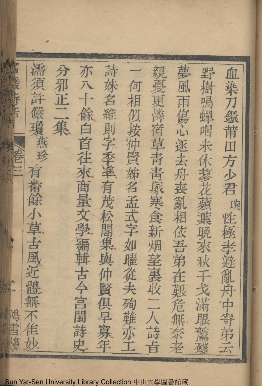| (PRINT FRIENDLY VERSION) 名媛詩話十二卷續集三卷: 十五卷(清沈善寶撰)。清光緒五年(1879)鴻雪樓刻巾箱本 ![]() 頁碼 : 卷三2a | 点 击 放 大 | 名媛詩話十二卷續集三卷: 十五卷(清沈善寶撰)。清光緒五年(1879)鴻雪樓刻巾箱本![]() 頁碼 : 卷三1b | 点 击 放 大 | 返回 |
