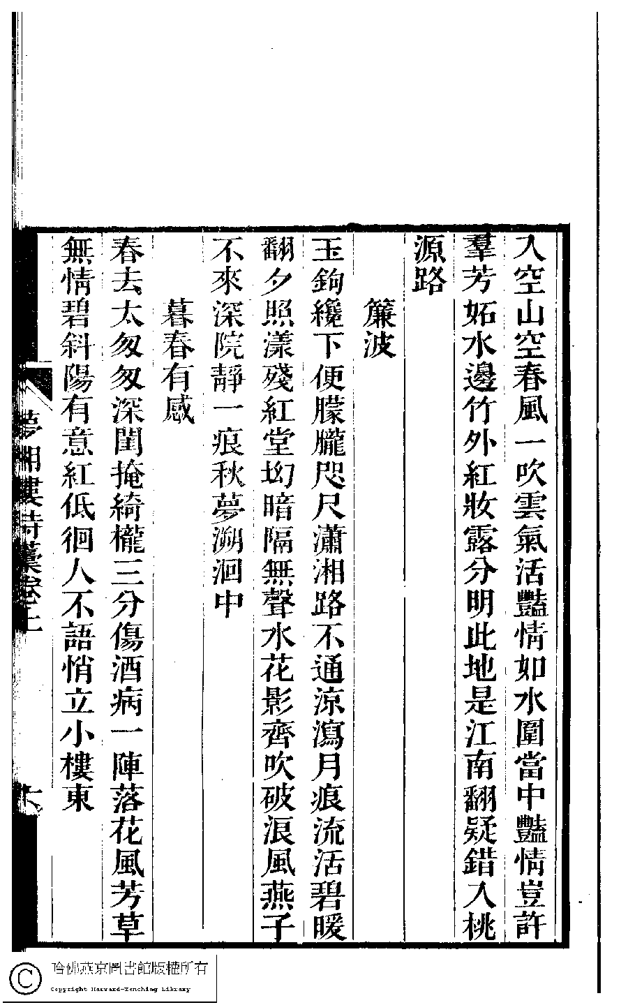 | 原書: 夢湘樓詩稿﹕二卷﹐詞稿﹕一卷﹔繭香館吟艸﹕一卷﹐繡餘詞草﹕一卷(清宗婉等撰): 夢湘樓詩稿﹕二卷﹐詞稿﹕一卷 |