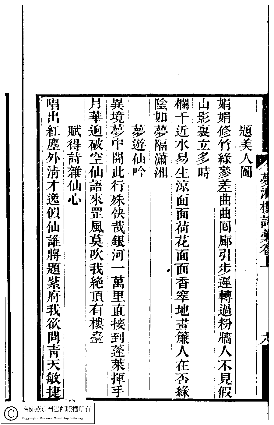 | 原書: 夢湘樓詩稿﹕二卷﹐詞稿﹕一卷﹔繭香館吟艸﹕一卷﹐繡餘詞草﹕一卷(清宗婉等撰): 夢湘樓詩稿﹕二卷﹐詞稿﹕一卷 |