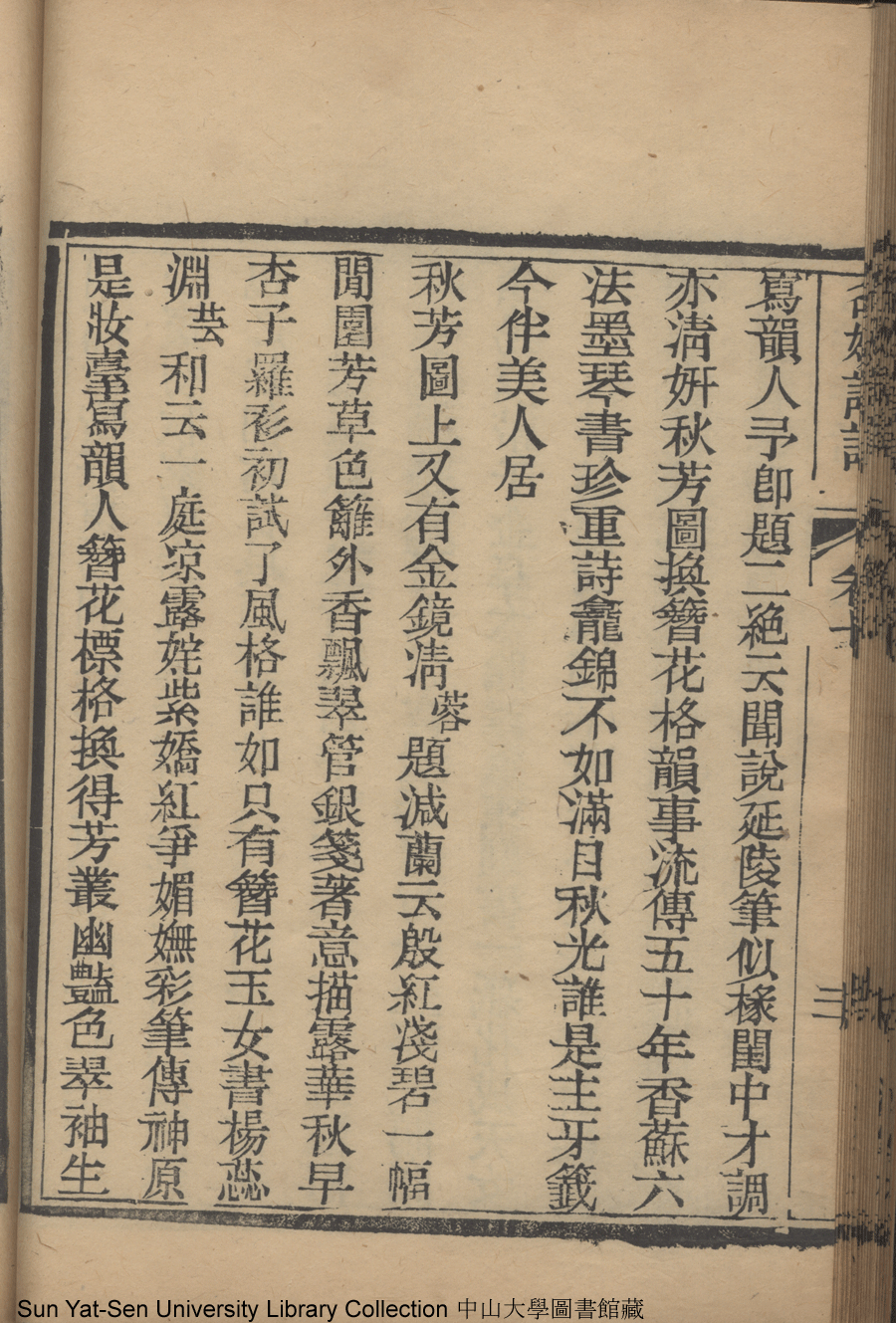 | (PRINT FRIENDLY VERSION) 名媛詩話十二卷續集三卷: 十五卷(清沈善寶撰)。清光緒五年(1879)鴻雪樓刻巾箱本 ![]() 頁碼 : 卷七20b | 点 击 放 大 | 名媛詩話十二卷續集三卷: 十五卷(清沈善寶撰)。清光緒五年(1879)鴻雪樓刻巾箱本![]() 頁碼 : 卷七20a | 点 击 放 大 | 返回 |