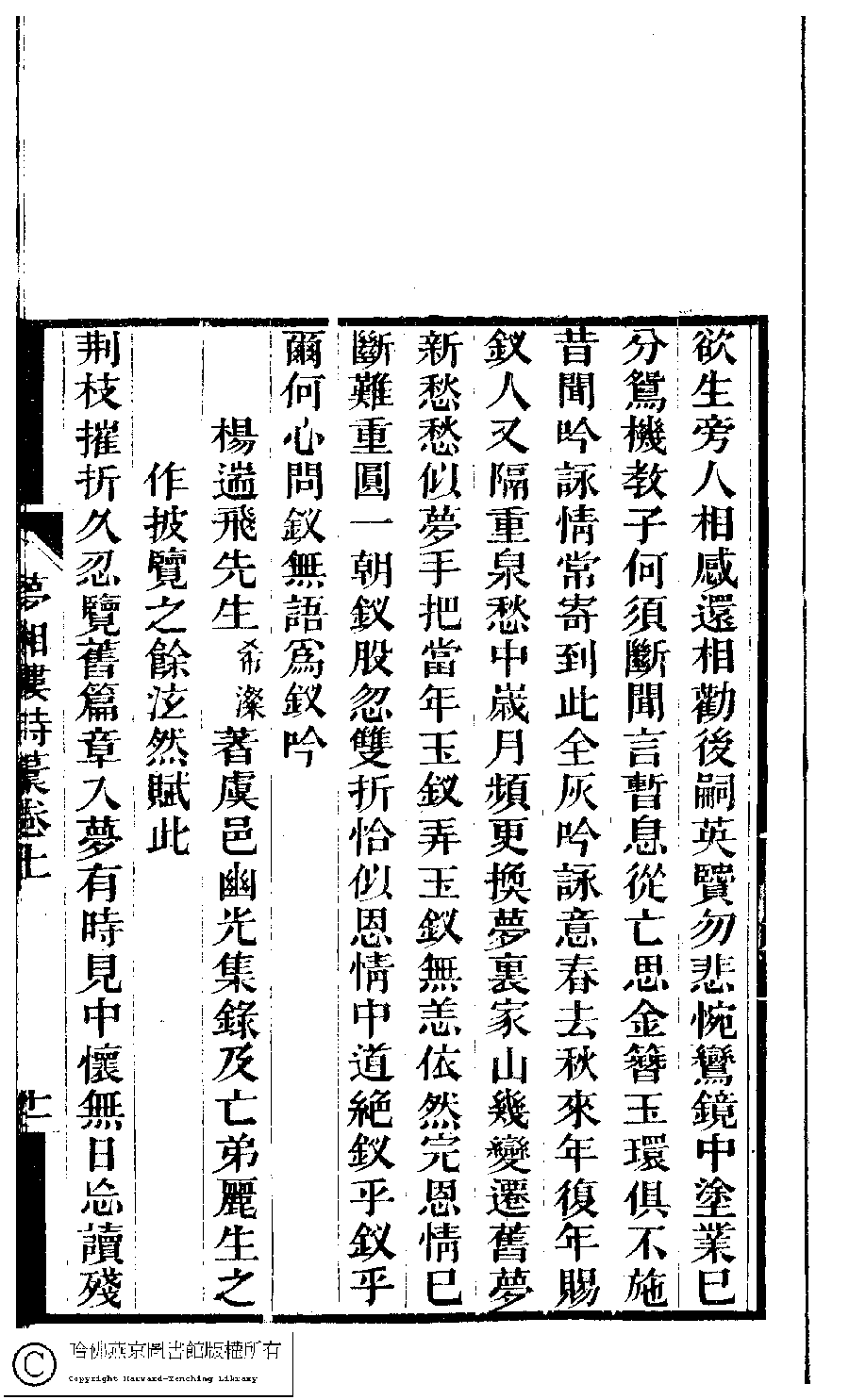 | 原書: 夢湘樓詩稿﹕二卷﹐詞稿﹕一卷﹔繭香館吟艸﹕一卷﹐繡餘詞草﹕一卷(清宗婉等撰): 夢湘樓詩稿﹕二卷﹐詞稿﹕一卷 |