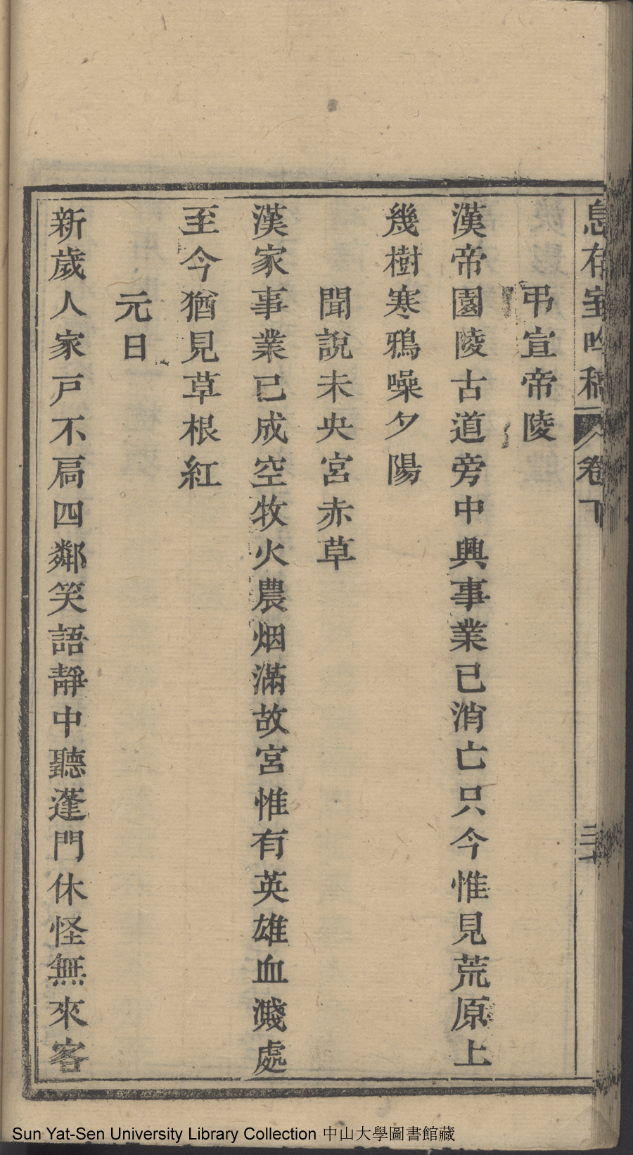 | (PRINT FRIENDLY VERSION) 息存室吟稿初集一卷續集一卷:二卷(清杭溫如撰)。清嘉慶十三年戊辰(1808)原刻續集嘉慶二十二年丁丑(1817)刻光緒三十四年(1908)重梓 ![]() 頁碼 : 續集28a | 点 击 放 大 | 息存室吟稿初集一卷續集一卷:二卷(清杭溫如撰)。清嘉慶十三年戊辰(1808)原刻續集嘉慶二十二年丁丑(1817)刻光緒三十四年(1908)重梓![]() 頁碼 : 續集27b | 点 击 放 大 | 返回 |