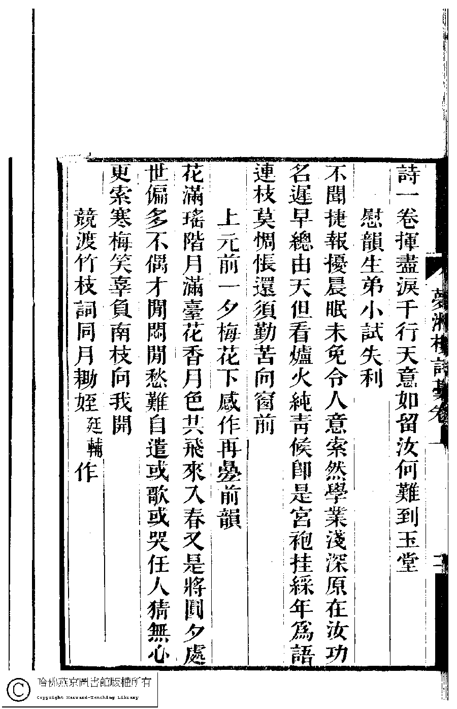| 原書: 夢湘樓詩稿﹕二卷﹐詞稿﹕一卷﹔繭香館吟艸﹕一卷﹐繡餘詞草﹕一卷(清宗婉等撰): 夢湘樓詩稿﹕二卷﹐詞稿﹕一卷 |