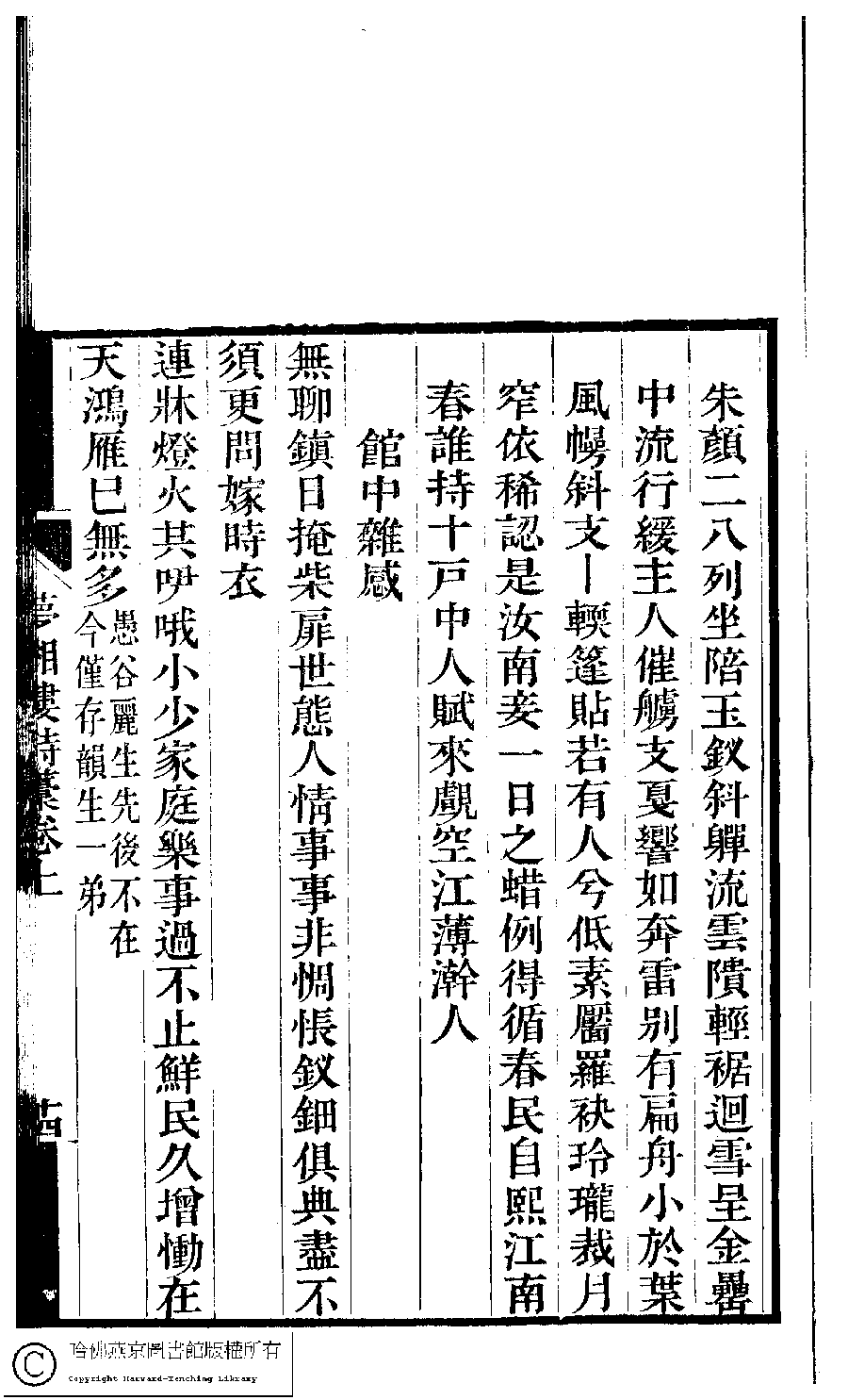 | 原書: 夢湘樓詩稿﹕二卷﹐詞稿﹕一卷﹔繭香館吟艸﹕一卷﹐繡餘詞草﹕一卷(清宗婉等撰): 夢湘樓詩稿﹕二卷﹐詞稿﹕一卷 |