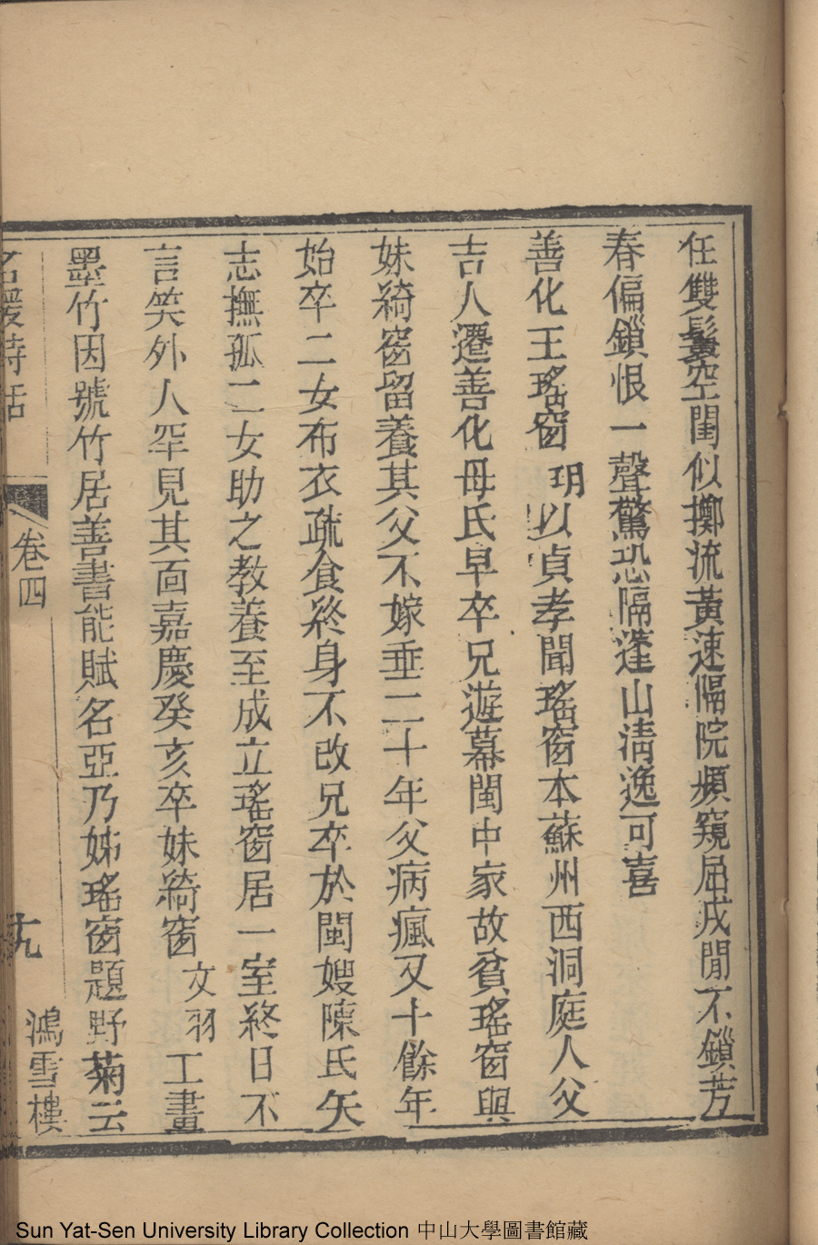 | (PRINT FRIENDLY VERSION) 名媛詩話十二卷續集三卷: 十五卷(清沈善寶撰)。清光緒五年(1879)鴻雪樓刻巾箱本 ![]() 頁碼 : 卷四19b | 点 击 放 大 | 名媛詩話十二卷續集三卷: 十五卷(清沈善寶撰)。清光緒五年(1879)鴻雪樓刻巾箱本![]() 頁碼 : 卷四19a | 点 击 放 大 | 返回 |