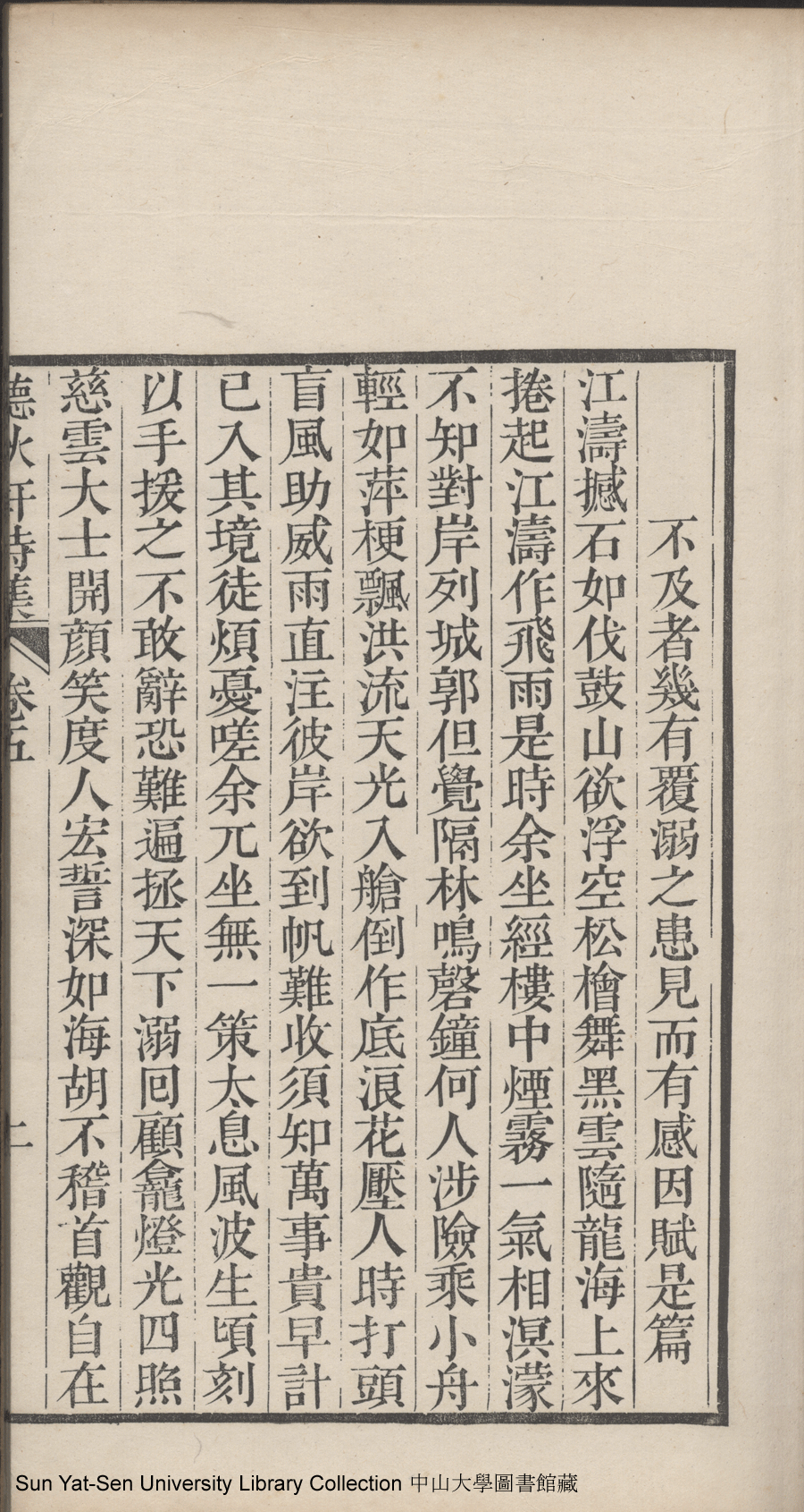 | (PRINT FRIENDLY VERSION) 聽秋軒詩集:六卷(清駱綺蘭撰)。清嘉慶金陵龔氏刻本 ![]() 頁碼 : 卷五2a | 点 击 放 大 | 聽秋軒詩集:六卷(清駱綺蘭撰)。清嘉慶金陵龔氏刻本![]() 頁碼 : 卷五1b | 点 击 放 大 | 返回 |