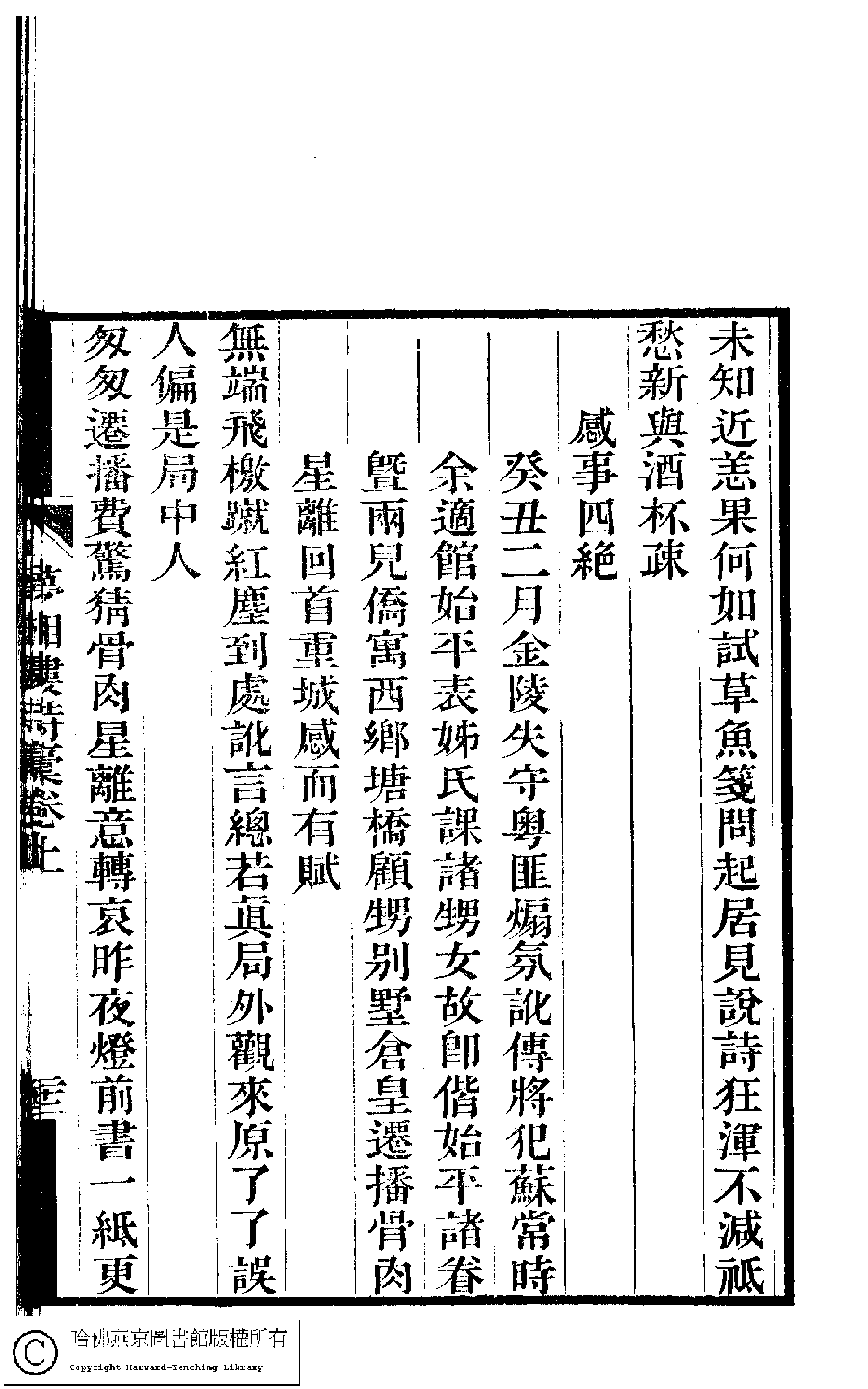 | 原書: 夢湘樓詩稿﹕二卷﹐詞稿﹕一卷﹔繭香館吟艸﹕一卷﹐繡餘詞草﹕一卷(清宗婉等撰): 夢湘樓詩稿﹕二卷﹐詞稿﹕一卷 |