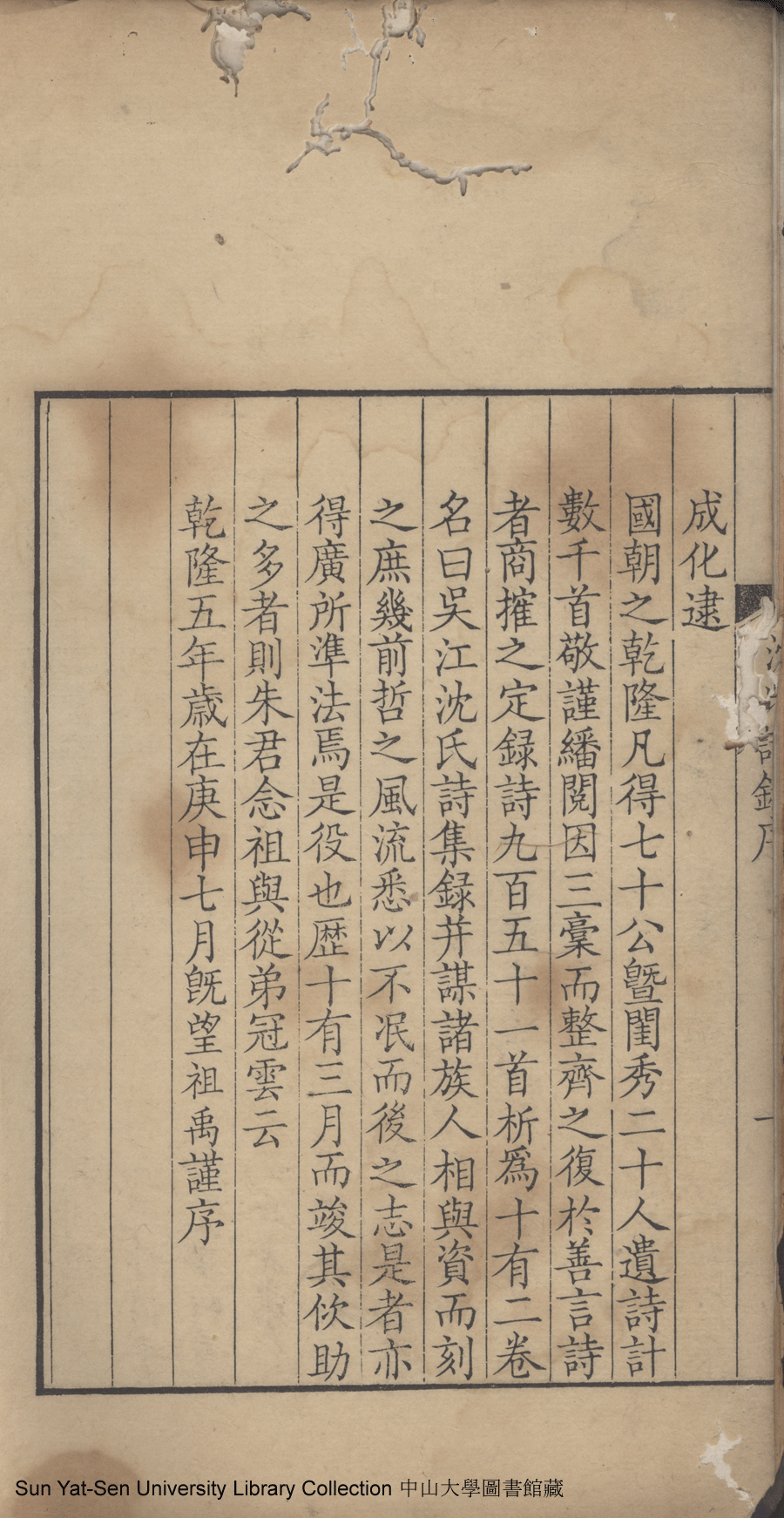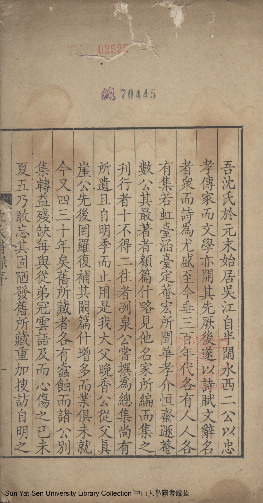 | (PRINT FRIENDLY VERSION) 吳江沈氏詩集:十二卷(清沈祖禹輯)。乾隆五年(1740)沈氏刻本 ![]() 頁碼 : 沈祖禹序1b | 点 击 放 大 | 吳江沈氏詩集:十二卷(清沈祖禹輯)。乾隆五年(1740)沈氏刻本![]() 頁碼 : 沈祖禹序1a | 点 击 放 大 | 返回 |