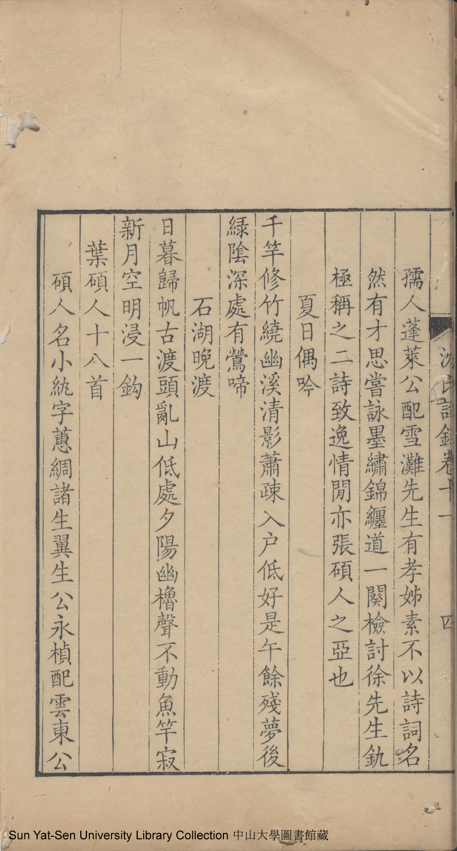 | (PRINT FRIENDLY VERSION) 吳江沈氏詩集:十二卷(清沈祖禹輯)。乾隆五年(1740)沈氏刻本 ![]() 頁碼 : 鍗峰崄涓 4b | 点 击 放 大 | 吳江沈氏詩集:十二卷(清沈祖禹輯)。乾隆五年(1740)沈氏刻本![]() 頁碼 : 鍗峰崄涓 4a | 点 击 放 大 | 返回 |