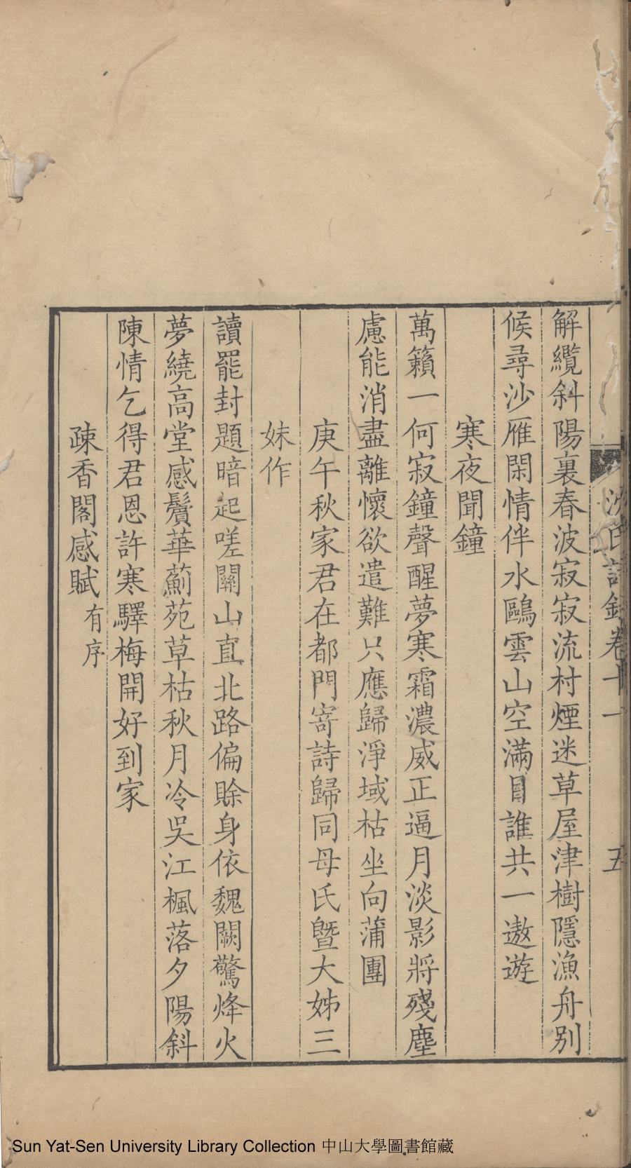 | (PRINT FRIENDLY VERSION) 吳江沈氏詩集:十二卷(清沈祖禹輯)。乾隆五年(1740)沈氏刻本 ![]() 頁碼 : 鍗峰崄涓 6a | 点 击 放 大 | 吳江沈氏詩集:十二卷(清沈祖禹輯)。乾隆五年(1740)沈氏刻本![]() 頁碼 : 鍗峰崄涓 5b | 点 击 放 大 | 返回 |