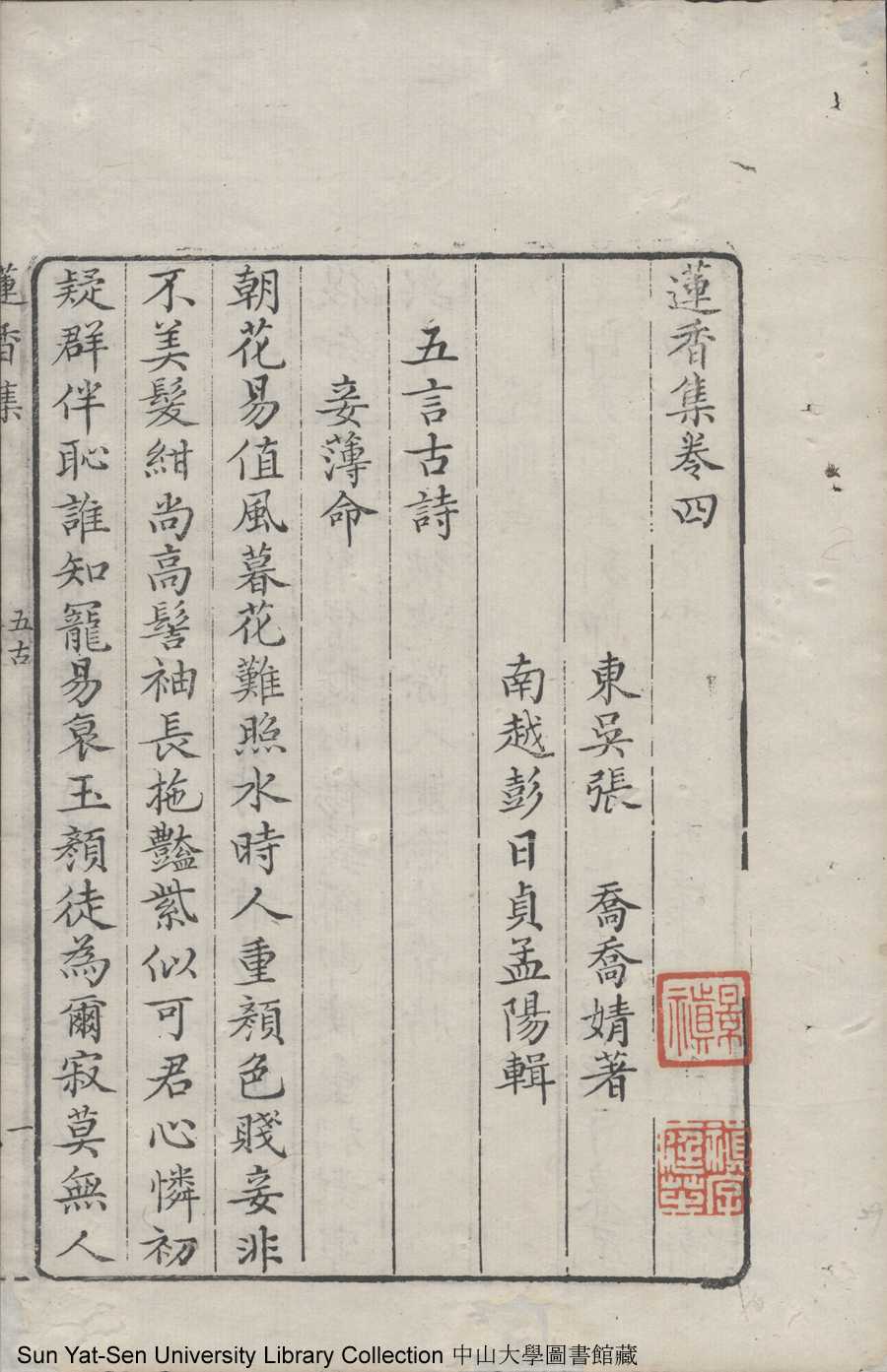 | 原書: 蓮香集:五卷(明張喬撰) |