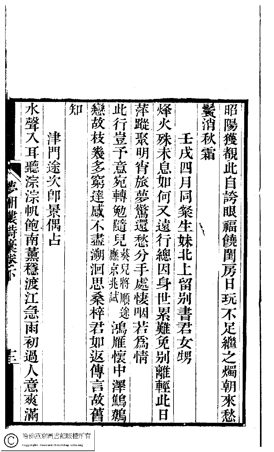 | (PRINT FRIENDLY VERSION) 夢湘樓詩稿﹕二卷﹐詞稿﹕一卷﹔繭香館吟艸﹕一卷﹐繡餘詞草﹕一卷(清宗婉等撰) : 夢湘樓詩稿﹕二卷﹐詞稿﹕一卷。清光緒六年(1880)常熟宗氏刻本 ![]() 頁碼 : 下.12a | 点 击 放 大 | 夢湘樓詩稿﹕二卷﹐詞稿﹕一卷﹔繭香館吟艸﹕一卷﹐繡餘詞草﹕一卷(清宗婉等撰) : 夢湘樓詩稿﹕二卷﹐詞稿﹕一卷。清光緒六年(1880)常熟宗氏刻本![]() 頁碼 : 下.11b | 点 击 放 大 | 返回 |