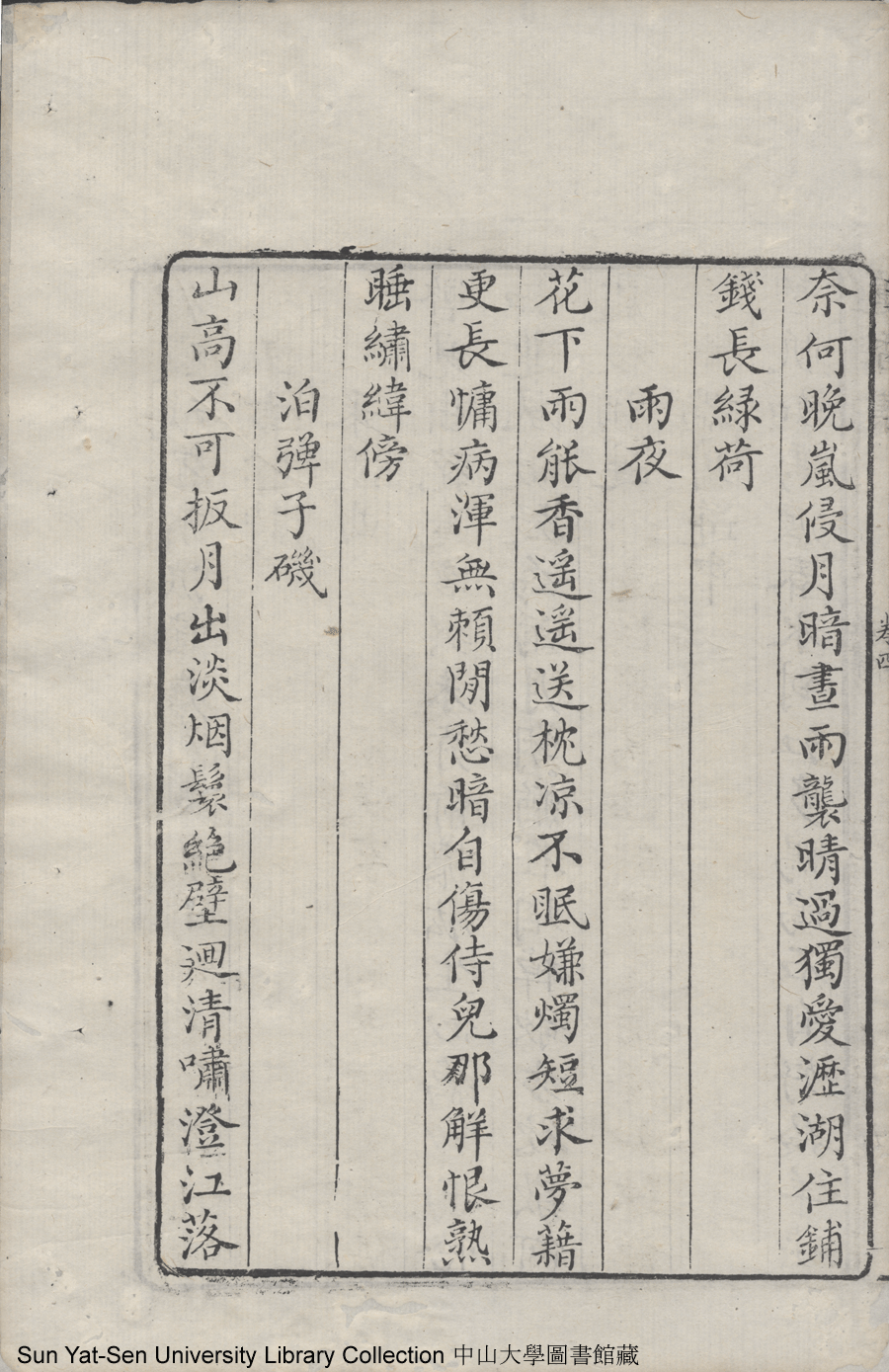 | (PRINT FRIENDLY VERSION) 蓮香集:五卷(明張喬撰)。清乾隆三十年(1765)順德梁釪重刻本 ![]() 頁碼 : 卷四5a | 点 击 放 大 | 蓮香集:五卷(明張喬撰)。清乾隆三十年(1765)順德梁釪重刻本![]() 頁碼 : 卷四4b | 点 击 放 大 | 返回 |