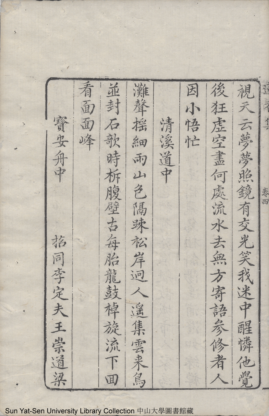 | (PRINT FRIENDLY VERSION) 蓮香集:五卷(明張喬撰)。清乾隆三十年(1765)順德梁釪重刻本 ![]() 頁碼 : 卷四5b | 点 击 放 大 | 蓮香集:五卷(明張喬撰)。清乾隆三十年(1765)順德梁釪重刻本![]() 頁碼 : 卷四5a | 点 击 放 大 | 返回 |