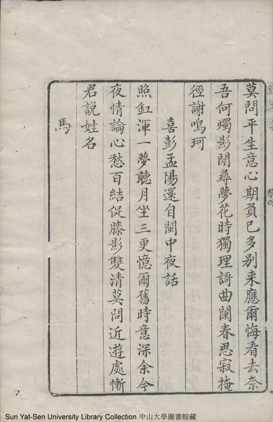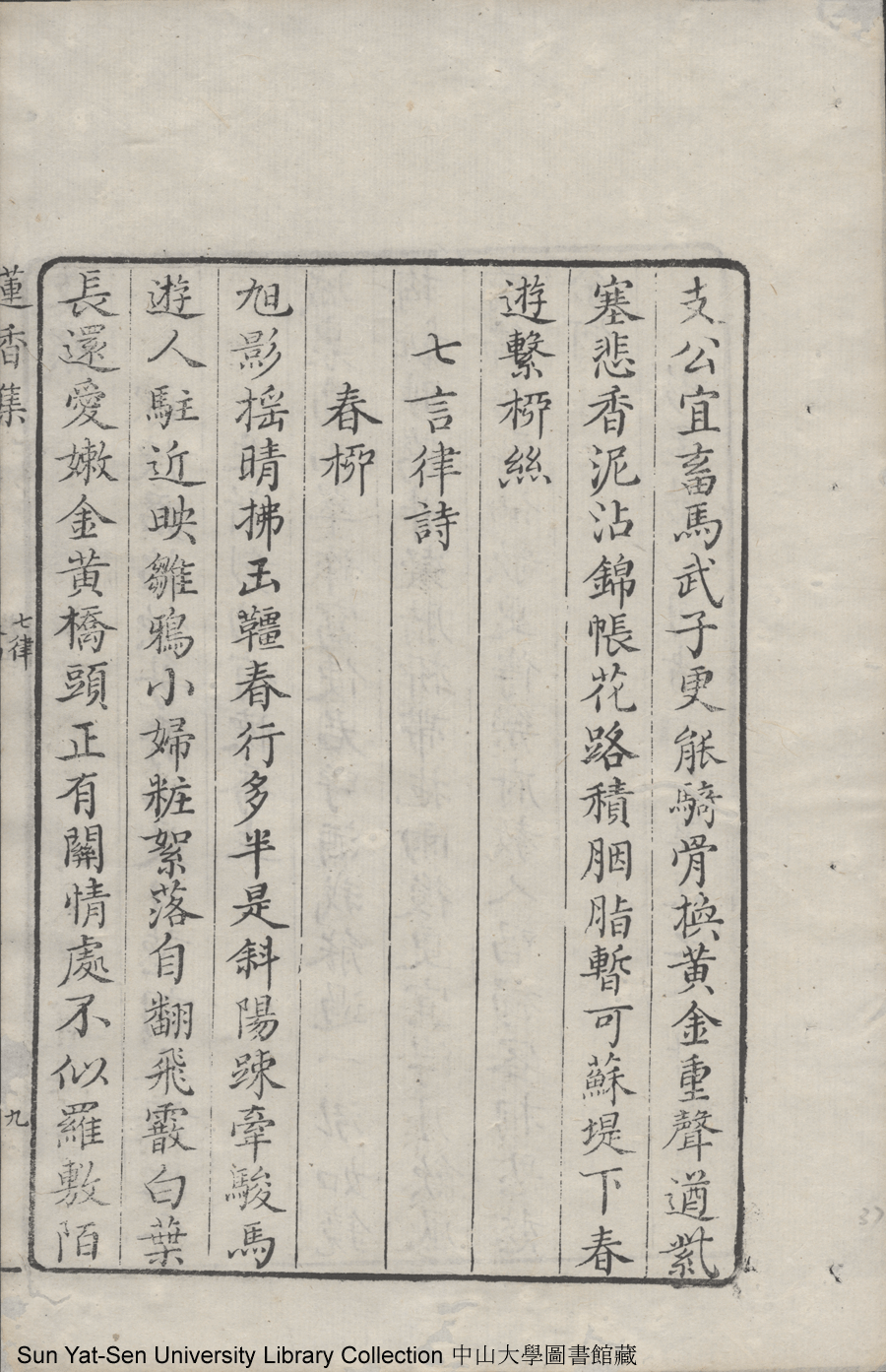 | (PRINT FRIENDLY VERSION) 蓮香集:五卷(明張喬撰)。清乾隆三十年(1765)順德梁釪重刻本 ![]() 頁碼 : 卷四9a | 点 击 放 大 | 蓮香集:五卷(明張喬撰)。清乾隆三十年(1765)順德梁釪重刻本![]() 頁碼 : 卷四8b | 点 击 放 大 | 返回 |