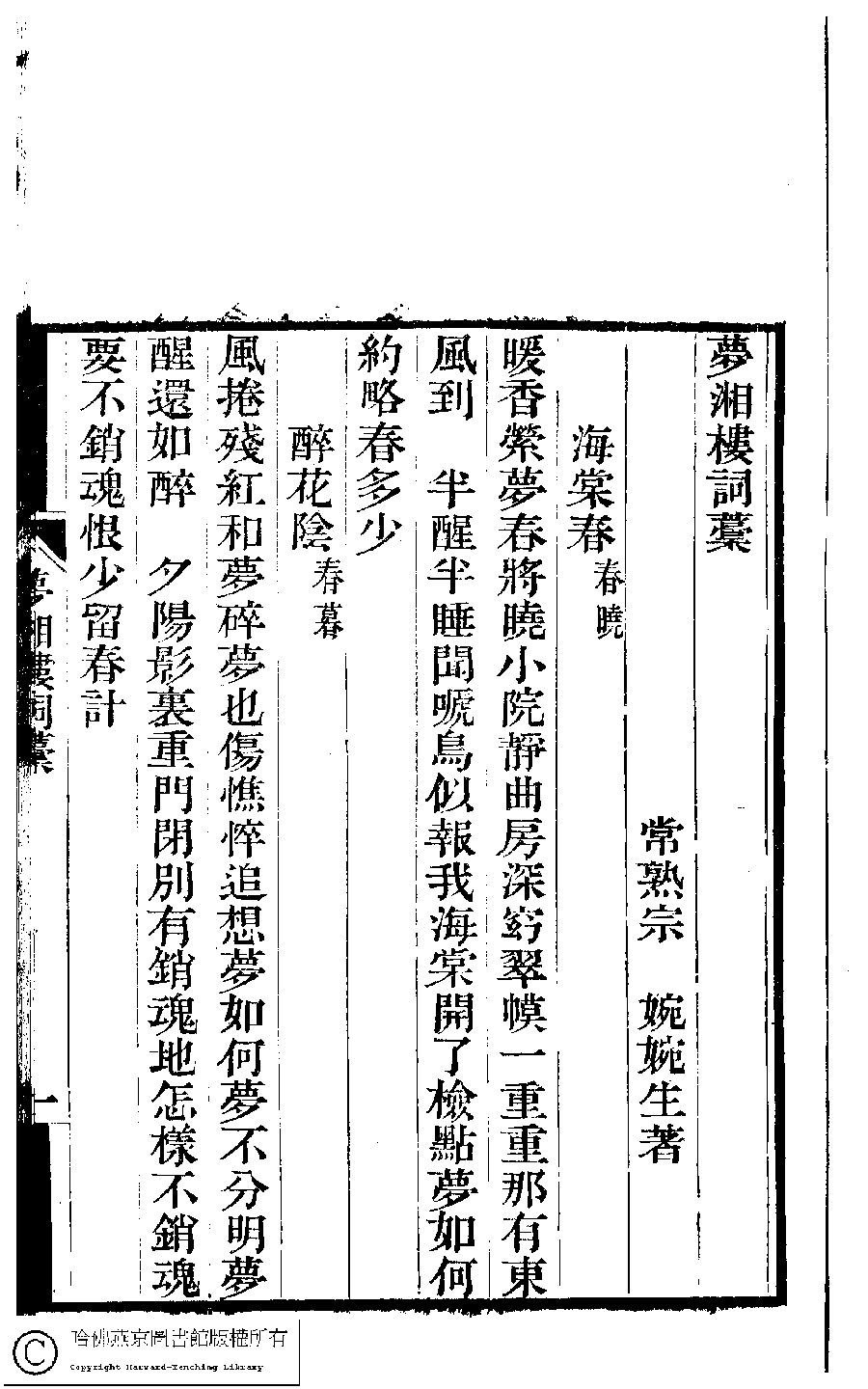 | 原書: 夢湘樓詩稿﹕二卷﹐詞稿﹕一卷﹔繭香館吟艸﹕一卷﹐繡餘詞草﹕一卷(清宗婉等撰): 夢湘樓詩稿﹕二卷﹐詞稿﹕一卷 |