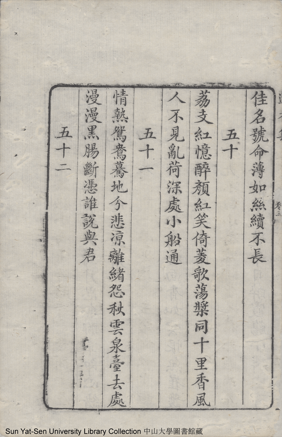 | (PRINT FRIENDLY VERSION) 蓮香集:五卷(明張喬撰)。清乾隆三十年(1765)順德梁釪重刻本 ![]() 頁碼 : 卷三11a | 点 击 放 大 | 蓮香集:五卷(明張喬撰)。清乾隆三十年(1765)順德梁釪重刻本![]() 頁碼 : 卷三10b | 点 击 放 大 | 返回 |