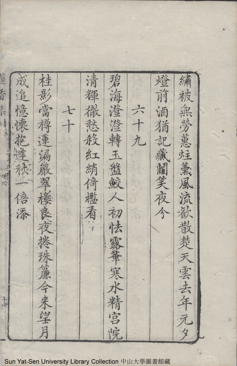 | (PRINT FRIENDLY VERSION) 蓮香集:五卷(明張喬撰)。清乾隆三十年(1765)順德梁釪重刻本 ![]() 頁碼 : 卷三14a | 点 击 放 大 | 返回 |