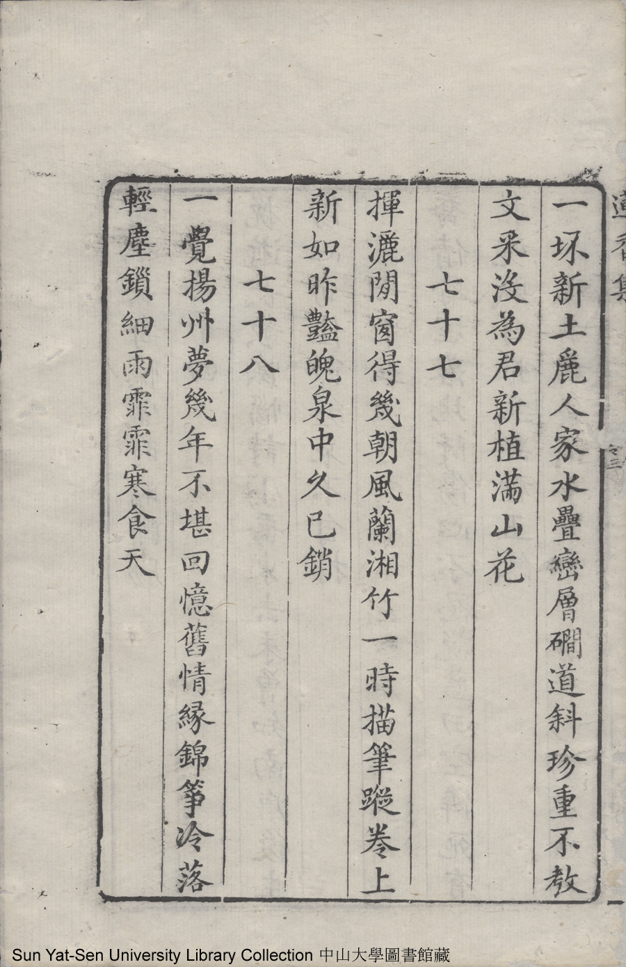 | (PRINT FRIENDLY VERSION) 蓮香集:五卷(明張喬撰)。清乾隆三十年(1765)順德梁釪重刻本 ![]() 頁碼 : 卷三15b | 点 击 放 大 | 蓮香集:五卷(明張喬撰)。清乾隆三十年(1765)順德梁釪重刻本![]() 頁碼 : 卷三15a | 点 击 放 大 | 返回 |