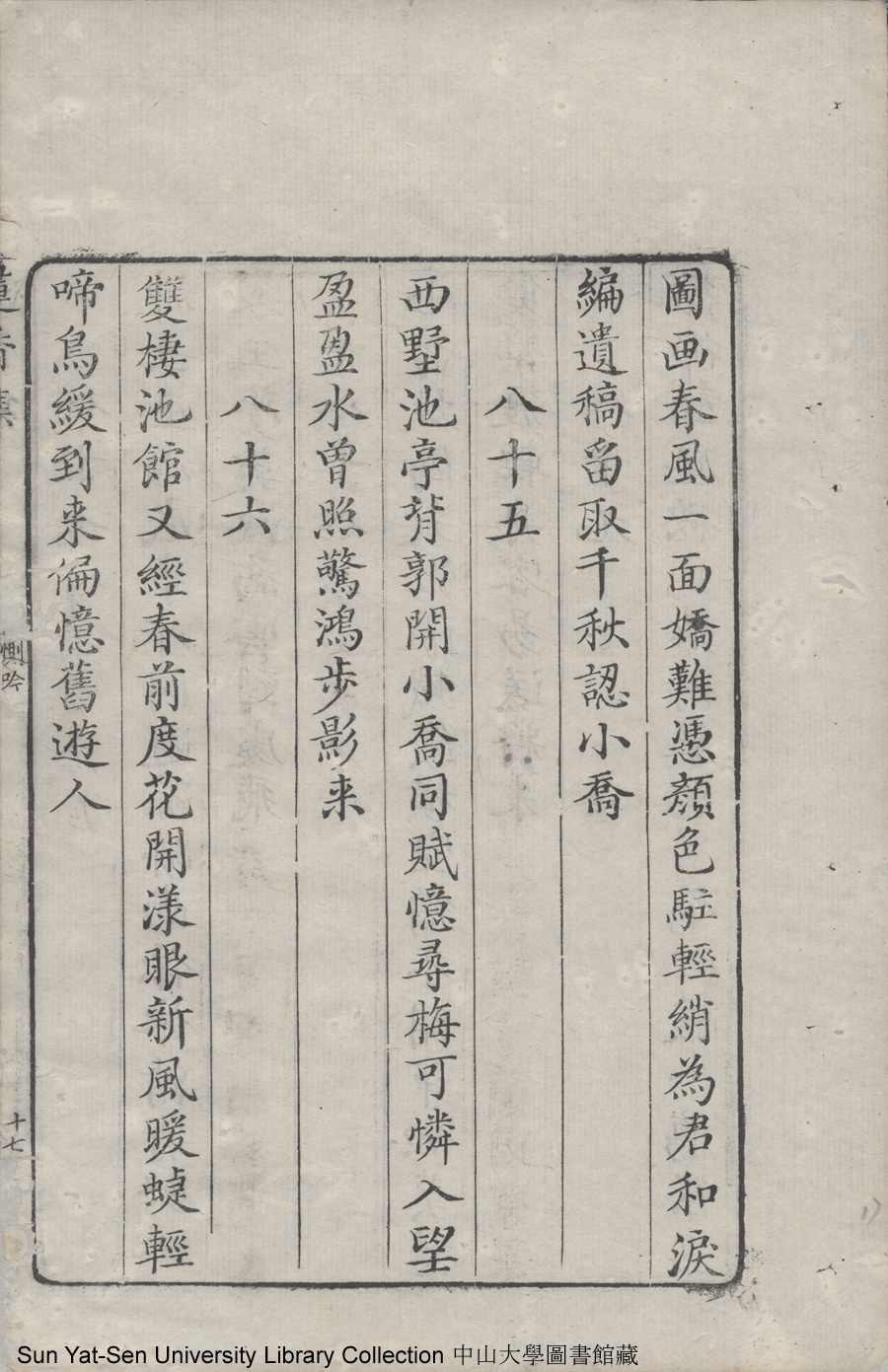 | (PRINT FRIENDLY VERSION) 蓮香集:五卷(明張喬撰)。清乾隆三十年(1765)順德梁釪重刻本 ![]() 頁碼 : 卷三17a | 点 击 放 大 | 返回 |