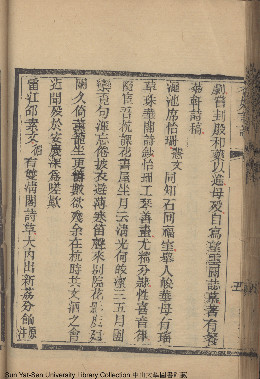 | (PRINT FRIENDLY VERSION) 名媛詩話十二卷續集三卷: 十五卷(清沈善寶撰)。清光緒五年(1879)鴻雪樓刻巾箱本 ![]() 頁碼 : 卷十一5b | 点 击 放 大 | 名媛詩話十二卷續集三卷: 十五卷(清沈善寶撰)。清光緒五年(1879)鴻雪樓刻巾箱本![]() 頁碼 : 卷十一5a | 点 击 放 大 | 名媛詩話十二卷續集三卷: 十五卷(清沈善寶撰)。清光緒五年(1879)鴻雪樓刻巾箱本![]() 頁碼 : 卷十一4b | 点 击 放 大 | 返回 |
