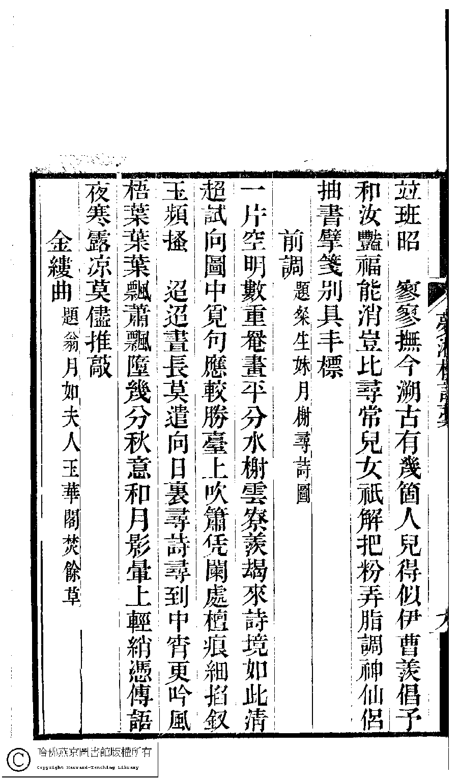 詩詞 [前調[鳳皇臺上憶吹簫] ﹕題粲生妹月榭尋詩圖]