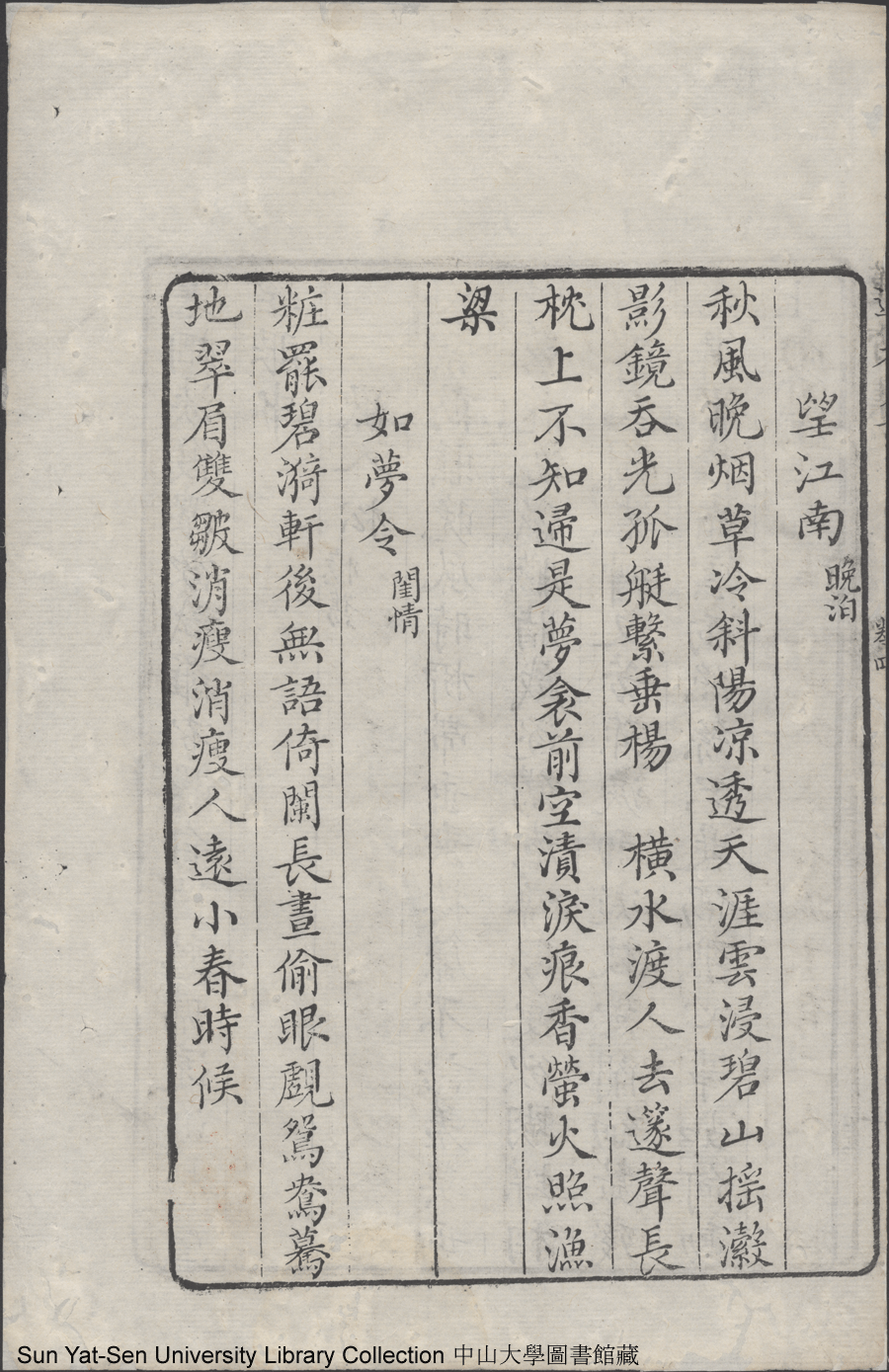 | (PRINT FRIENDLY VERSION) 蓮香集:五卷(明張喬撰)。清乾隆三十年(1765)順德梁釪重刻本 ![]() 頁碼 : 卷四33b | 点 击 放 大 | 返回 |