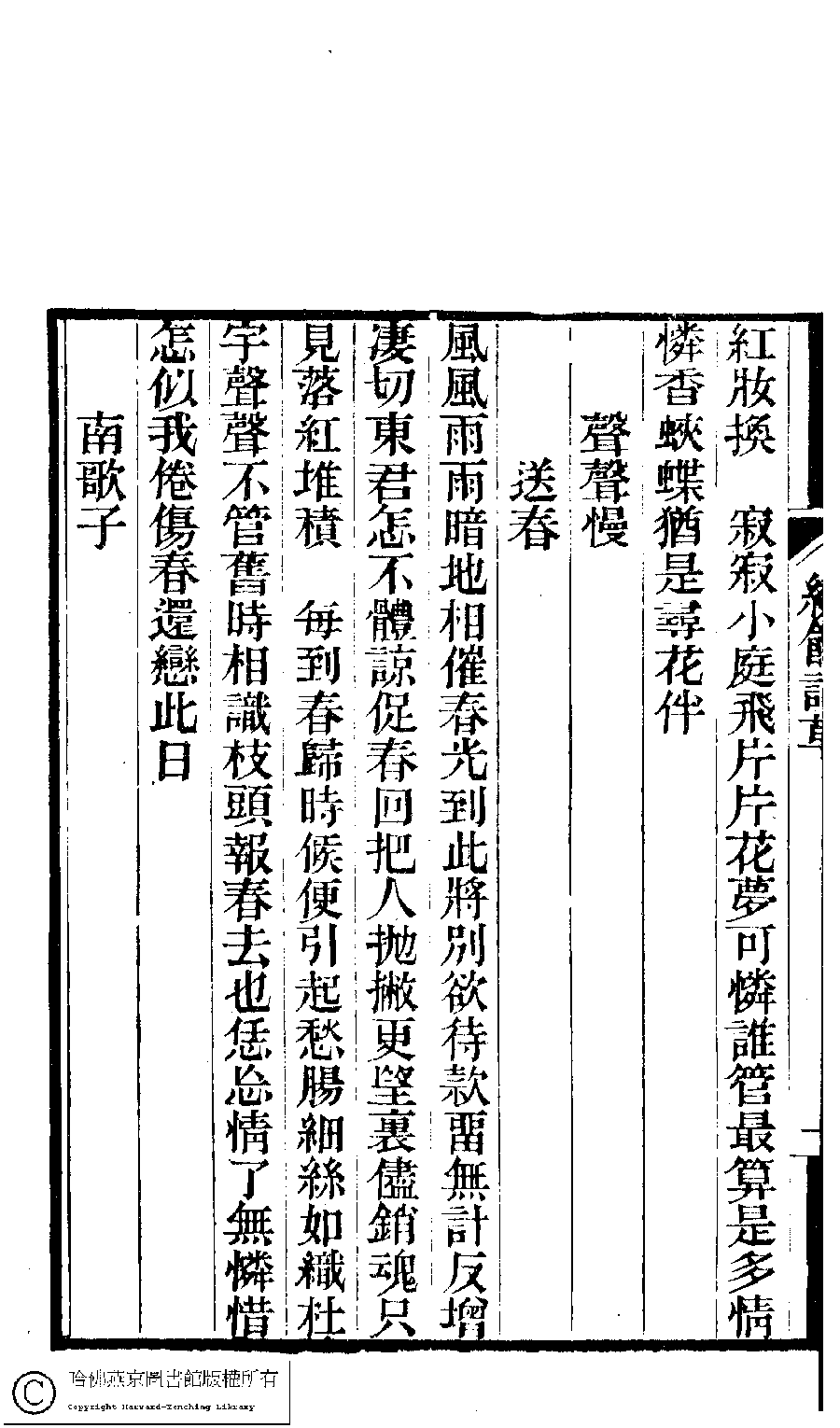 | 原書: 夢湘樓詩稿﹕二卷﹐詞稿﹕一卷﹔繭香館吟艸﹕一卷﹐繡餘詞草﹕一卷(清宗婉等撰): 繡餘詞草﹕一卷 |