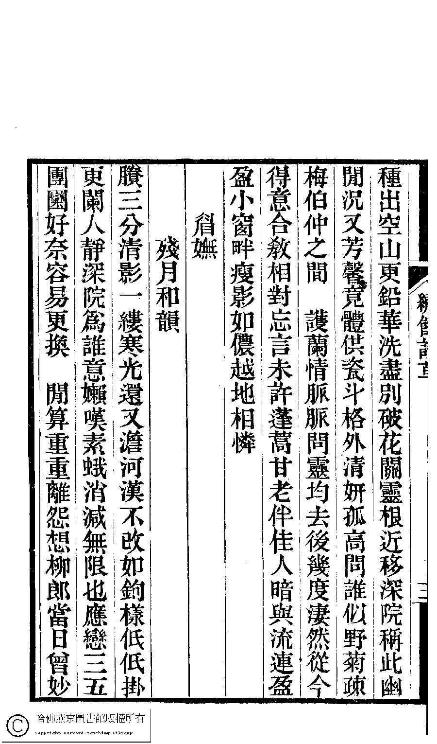 | 原書: 夢湘樓詩稿﹕二卷﹐詞稿﹕一卷﹔繭香館吟艸﹕一卷﹐繡餘詞草﹕一卷(清宗婉等撰): 繡餘詞草﹕一卷 |