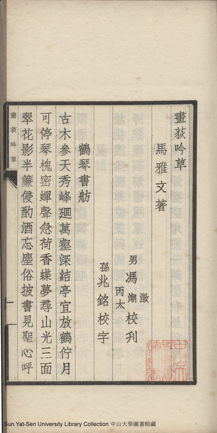 | 原書: 畫荻吟草:一卷(清馬雅文撰) |