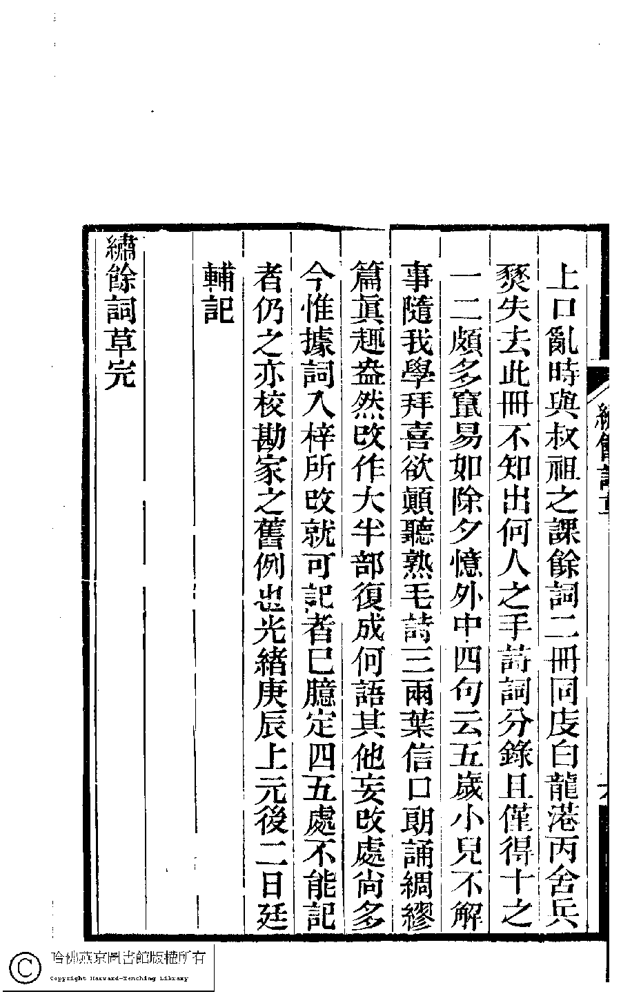 | (PRINT FRIENDLY VERSION) 夢湘樓詩稿﹕二卷﹐詞稿﹕一卷﹔繭香館吟艸﹕一卷﹐繡餘詞草﹕一卷(清宗婉等撰) : 繭香館吟艸﹕一卷。清光緒六年(1880)常熟宗氏刻本 ![]() 頁碼 : 6b | 点 击 放 大 | 夢湘樓詩稿﹕二卷﹐詞稿﹕一卷﹔繭香館吟艸﹕一卷﹐繡餘詞草﹕一卷(清宗婉等撰) : 繡餘詞草﹕一卷。清光緒六年(1880)常熟宗氏刻本![]() 頁碼 : 6b | 点 击 放 大 | 夢湘樓詩稿﹕二卷﹐詞稿﹕一卷﹔繭香館吟艸﹕一卷﹐繡餘詞草﹕一卷(清宗婉等撰) : 繡餘詞草﹕一卷。清光緒六年(1880)常熟宗氏刻本![]() 頁碼 : 6a | 点 击 放 大 | 夢湘樓詩稿﹕二卷﹐詞稿﹕一卷﹔繭香館吟艸﹕一卷﹐繡餘詞草﹕一卷(清宗婉等撰) : 繭香館吟艸﹕一卷。清光緒六年(1880)常熟宗氏刻本![]() 頁碼 : 6a | 点 击 放 大 | 返回 |