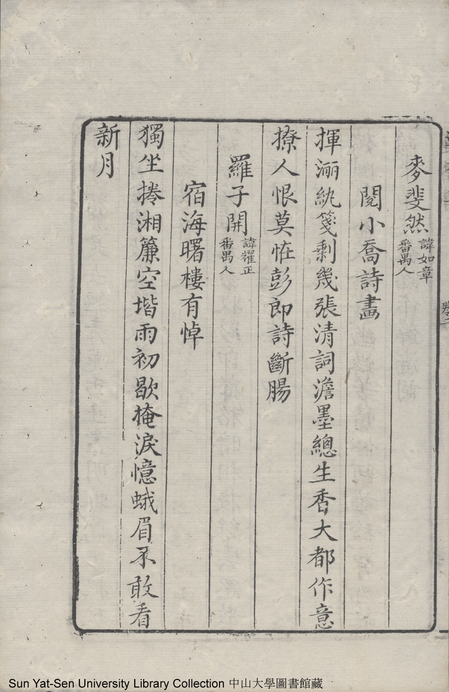 | (PRINT FRIENDLY VERSION) 蓮香集:五卷(明張喬撰)。清乾隆三十年(1765)順德梁釪重刻本 ![]() 頁碼 : 卷二27b | 点 击 放 大 | 返回 |