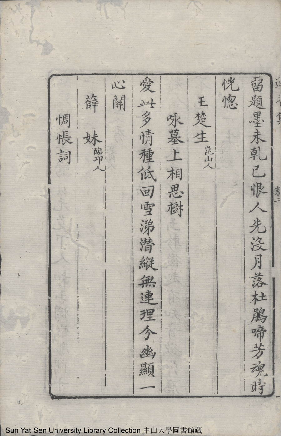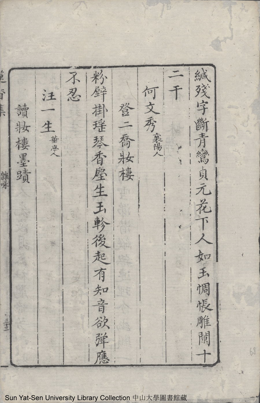 | (PRINT FRIENDLY VERSION) 蓮香集:五卷(明張喬撰)。清乾隆三十年(1765)順德梁釪重刻本 ![]() 頁碼 : 卷二33b | 点 击 放 大 | 蓮香集:五卷(明張喬撰)。清乾隆三十年(1765)順德梁釪重刻本![]() 頁碼 : 卷二33a | 点 击 放 大 | 返回 |