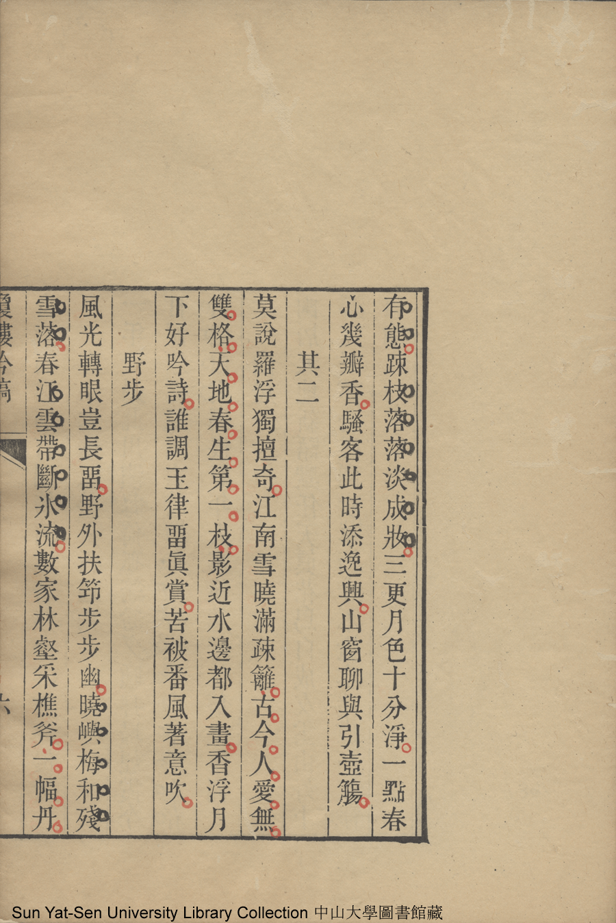 | (PRINT FRIENDLY VERSION) 瓊樓吟稿:一卷(清陶善撰)。清光緒九年(1883)刻本 ![]() 頁碼 : 吟稿6b | 点 击 放 大 | 瓊樓吟稿:一卷(清陶善撰)。清光緒九年(1883)刻本![]() 頁碼 : 吟稿6a | 点 击 放 大 | 返回 |